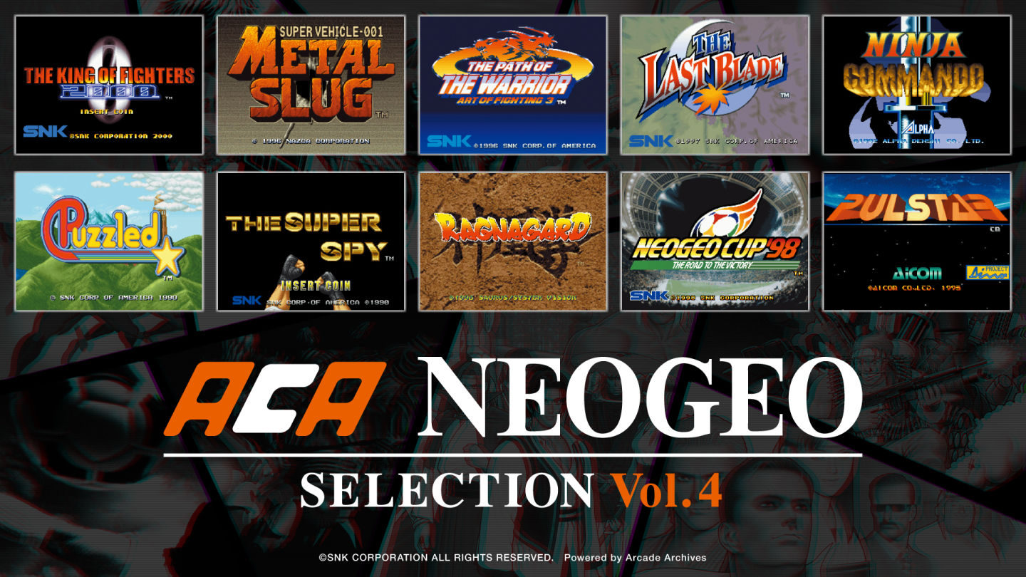 《ACA NEOGEO SELECTION》是收錄了 10 款精選「NEOGEO」遊戲的遊戲收藏作品。忠實重現了當時的遊戲,也新增了遊戲難度設定等,可以更好地體驗 NEOGEO 遊戲氛圍的新功能。《THE KING OF FIGHTERS》《METAL SLUG》等人氣系列之外,還收錄了射擊類、賽車類、體育類等各種類型的遊戲可供遊玩。