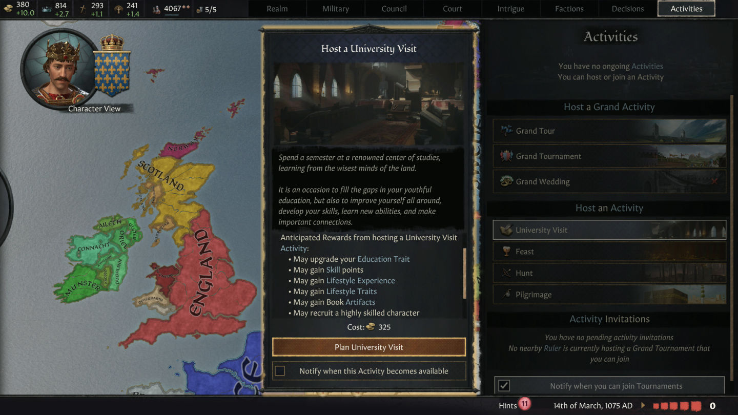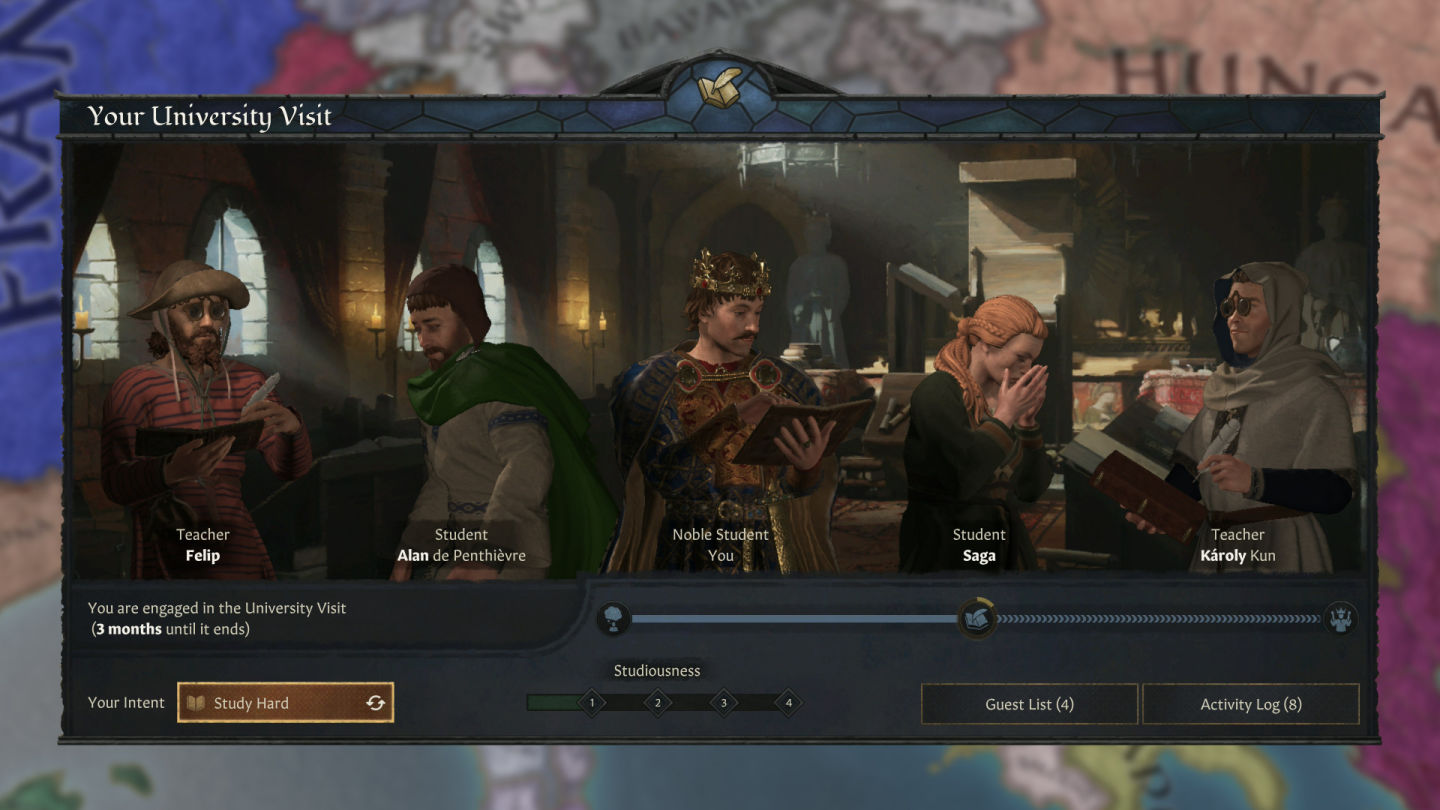 許多新的教育事件,為宮廷青少年的培訓機制大幅增添了深度。您現在可以透過更有互動性的方式教育宮廷中的孩子,包括正式的教導,以及一直都很重要的人生教訓。您要培養的不只是這些青少年的能力,更要形塑他們的人格,並根據他們未來會擔任的重要角色,培育出更合格或理想的特性。就算指導結束,教育也不必劃下句點。成年後的角色現在也能繼續接受教育,進入大學就讀並拓展他們對世界的認知。