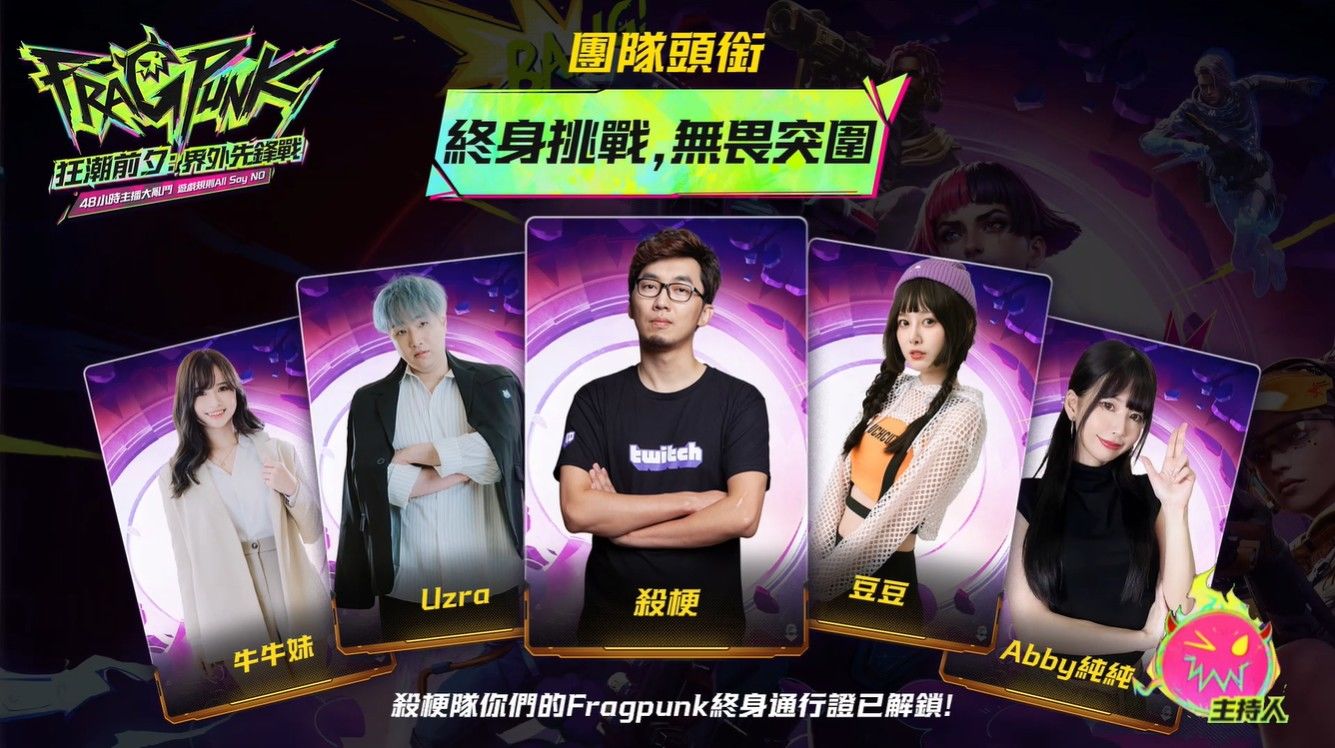 開服前夕,《FragPunk》官方舉辦「界外先鋒戰」48 小時六輪鏖戰直播節目,邀請四大實力隊伍參戰,展開連日激烈廝殺,點燃戰場狂潮!賽事戰況跌宕起伏,競技氛圍緊張刺激,四支隊伍在本次賽事中鬥智鬥勇將碎片卡的機制展現淋漓盡致!