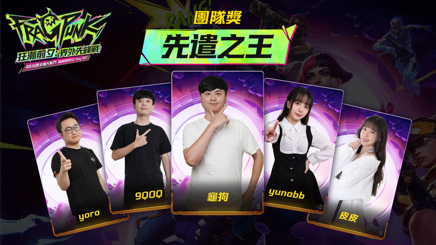 團隊獎:龜狗隊(龜狗、Yoro、9QOQ、Yunabb、皮皮)