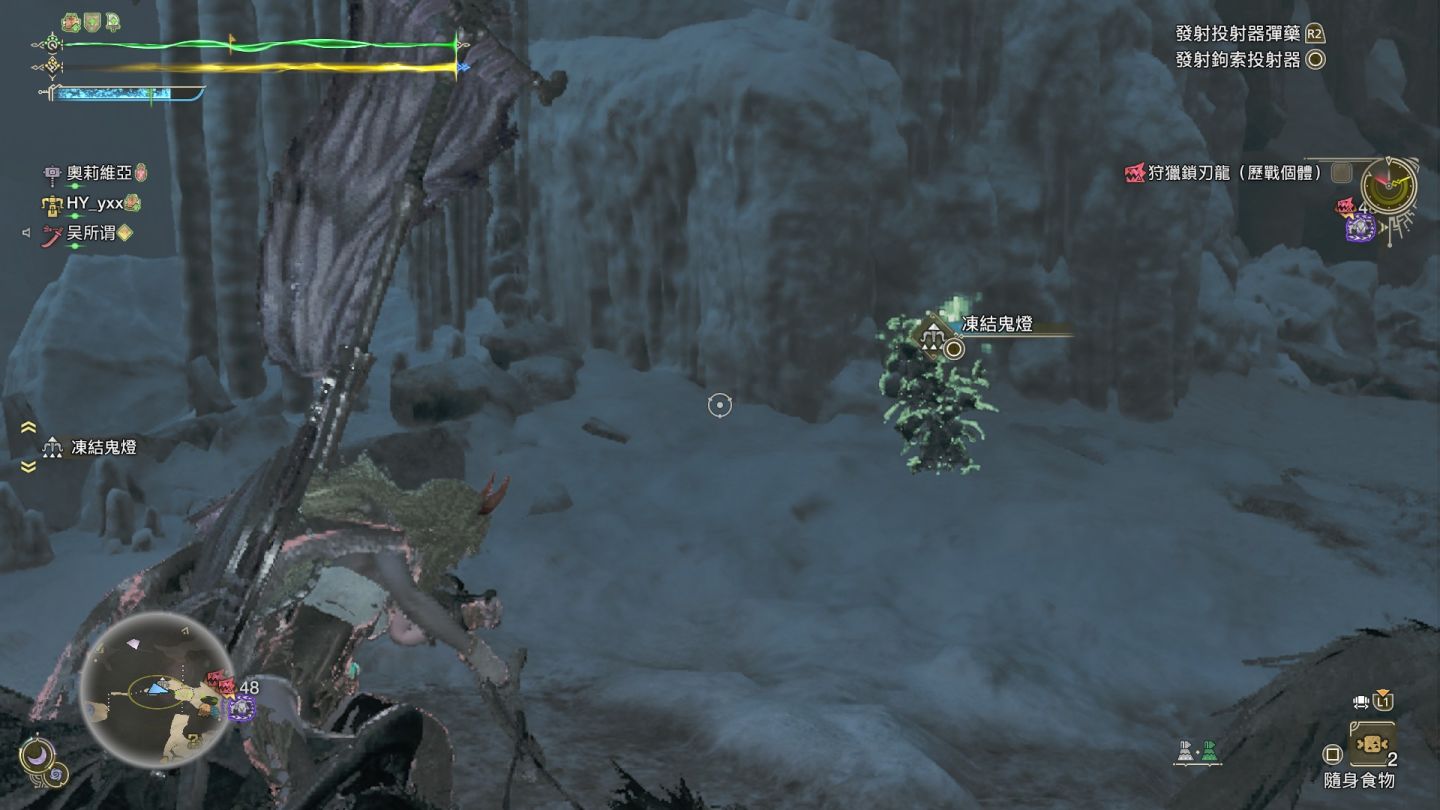 - 使用方法:瞄準素材點(如藥草、礦石等),按下投射器鍵,即可將素材拉至身邊