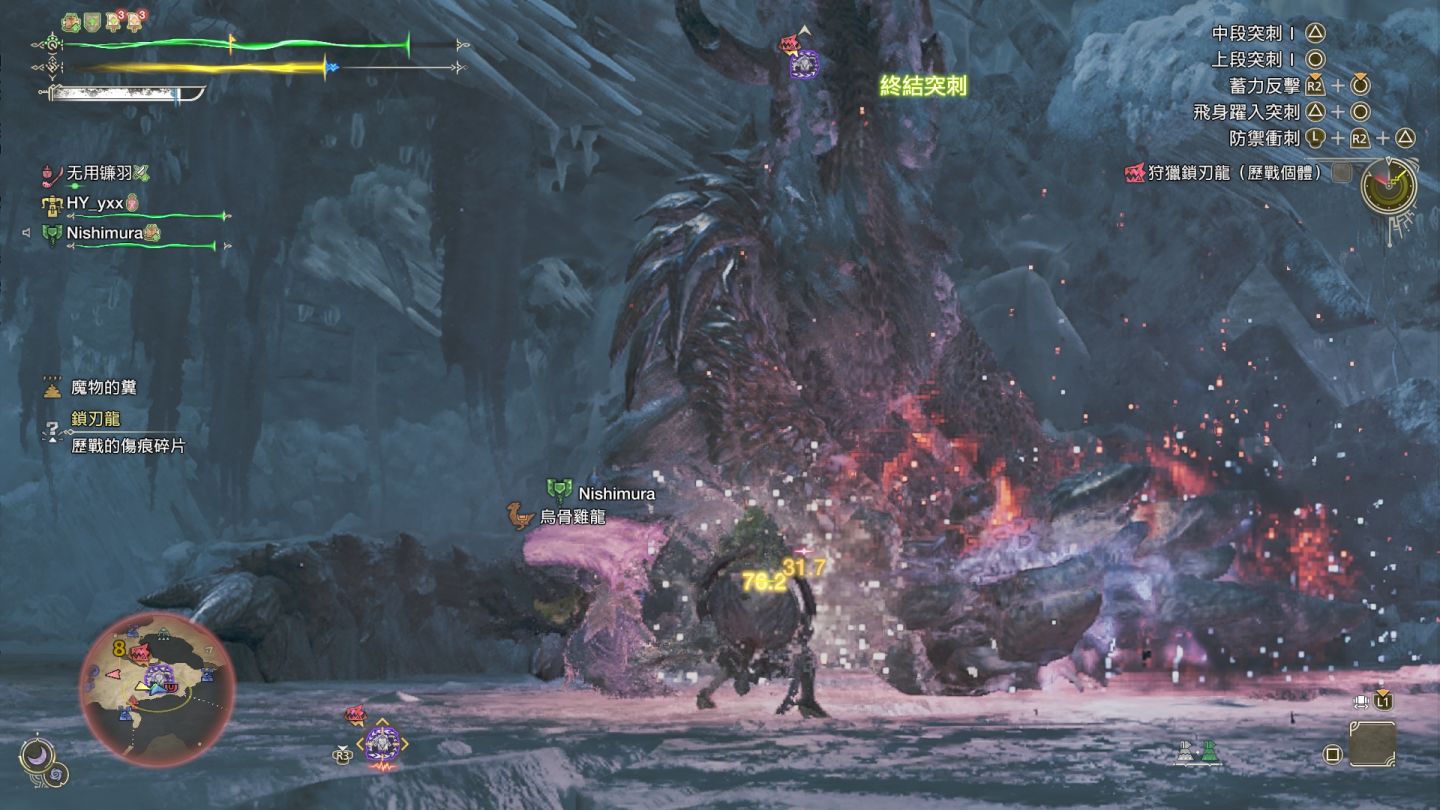 - 小地圖上魔物圖示出現骷髏頭,代表血量已接近臨界點