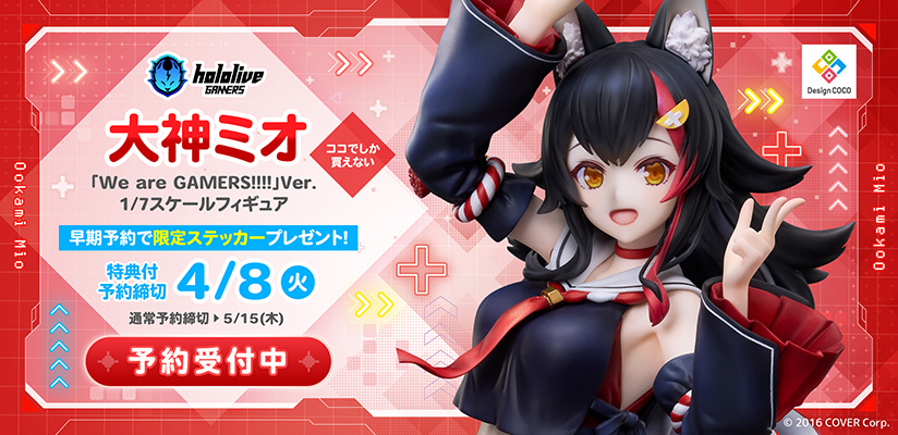 本次展示的白上吹雪和大神澪的等身大模型是在 COVER 的全力合作下,以 hololive Gamers 原創曲〈We are GAMERS!!!!〉的封面視覺圖為概念設計,好狐那寬大的尾巴和溫柔的笑臉從每個角度都散發著舒緩的魅力,狼媽則露出了燦爛的笑容散發著動人的可愛氛圍,其動感十足的姿勢讓她彷彿能從螢幕中蹦出來;此外兩人的底座都以遊戲主機的圖像作為點綴,雙方各自有一個司空部和ミオファ依偎在腳邊。