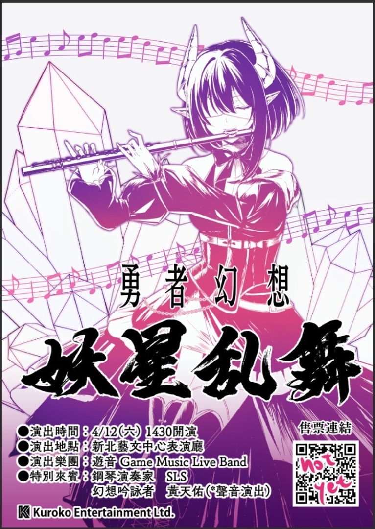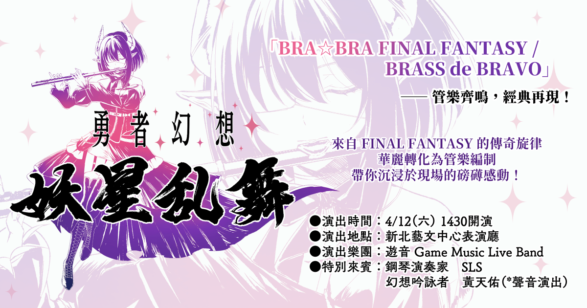黑子娛樂今(10)日宣布,以經典日式 RPG 遊戲曲目為主題的管樂團演奏會「勇者幻想 -妖星亂舞-」,即將在 4 月 12 日(六)於新北市藝文中心表演廳震撼登場,即日起於 KKTIX 平台全面開放售票!