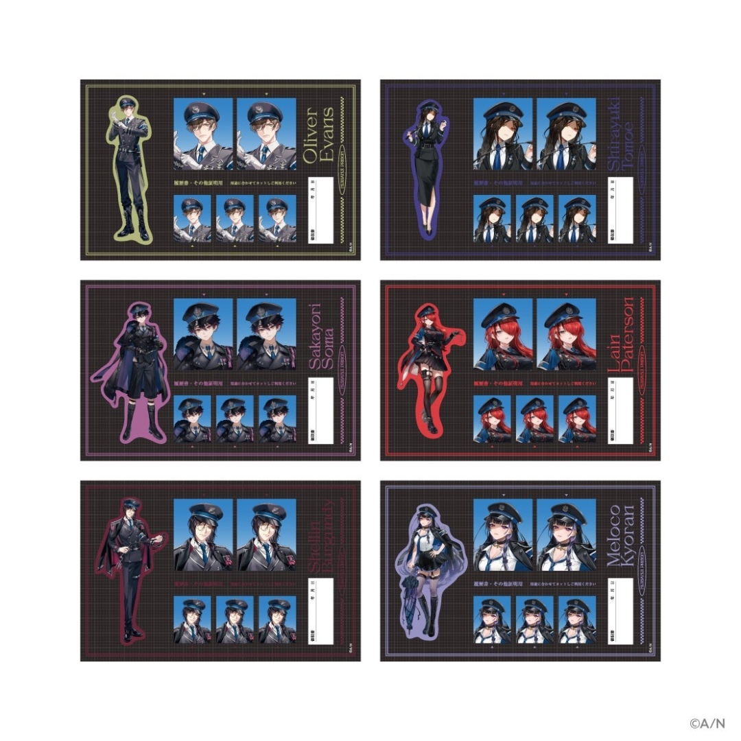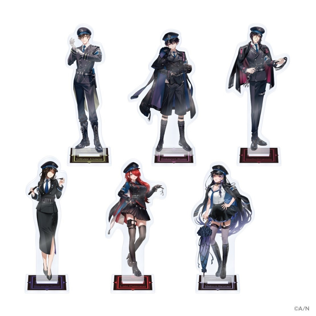 商品陣容包含壓克力立牌/文件夾/壓克力鑰匙圈/頭巾&吸水腕帶套組/監獄造型小包/隨機貼紙/隨機卡片共七種,喜歡本次參與的彩虹社成員以及獄警主題的粉絲們不要錯過!