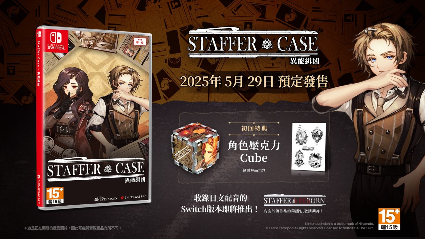 傑仕登宣布,由韓國 Team Tetrapod 開發,SHINSEGAE I&C 發行,以異能者間的鬥智為主題的懸疑推理遊戲《Staffer Case - 異能緝凶》,將推出 Nintendo Switch 版,預定於 2025 年 5 月 29 日發售,並公開豪華版的豐富內容。此外,也公布 NS 版本將獨家收錄日文配音及外傳作品《Staffer Reborn》!
