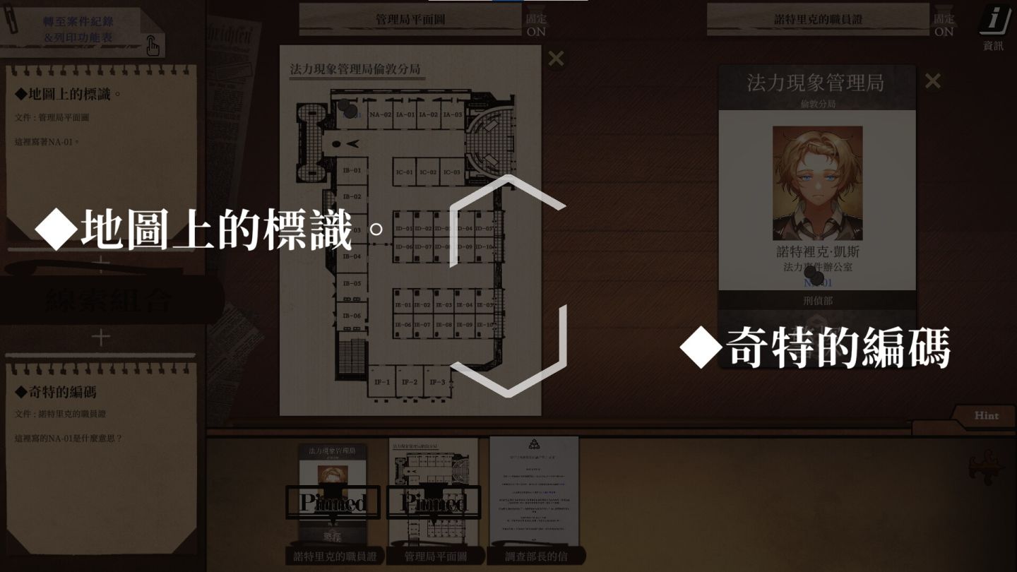 好在超能力者不只有罪犯,還有法力事件專案組的警探(新人諾特裡克除外)!資深警探們會利用超能力調查案發現場,將發現的線索整理成文檔。
