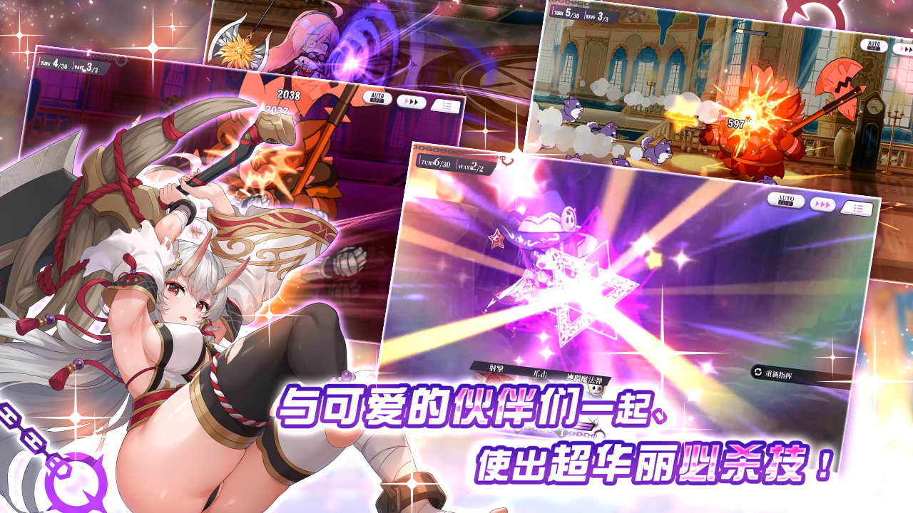 此外,玩家可以自由搭配多種技能,體驗無需操作的超簡單指令戰鬥。在戰鬥中,可愛的Q版角色將在戰場上自由奔跑,與立繪形象截然不同,施展震撼的必殺技演出,帶來爽快感 MAX 的戰鬥體驗!