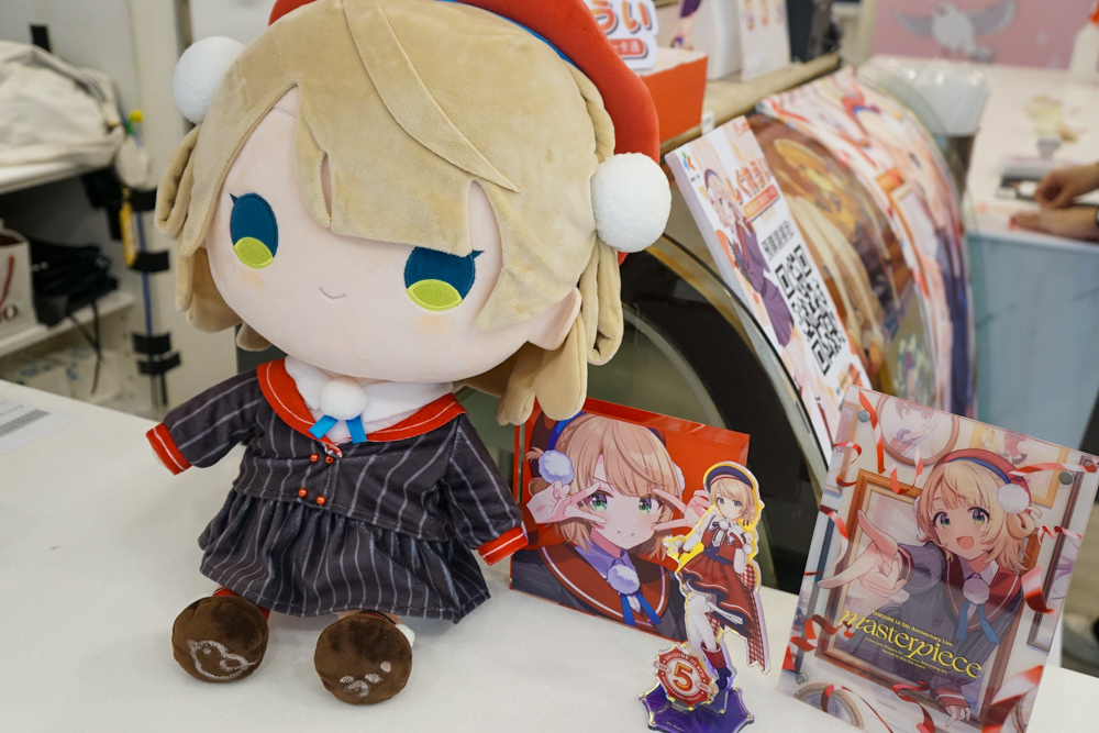 時雨羽衣在VTuber活動中以其獨特的個性和粉絲互動而聞名,2023 年 9 月的原創歌曲《蘿莉神安魂曲》(Loli Kami Requiem)是其最知名的迷因來源,搭配洗腦的旋律和誇張的歌詞,迅速在日本和國際VTuber圈走紅。這次時雨羽衣老師在場景擺設的玩偶上親筆簽名,粉絲們可以留意一下。