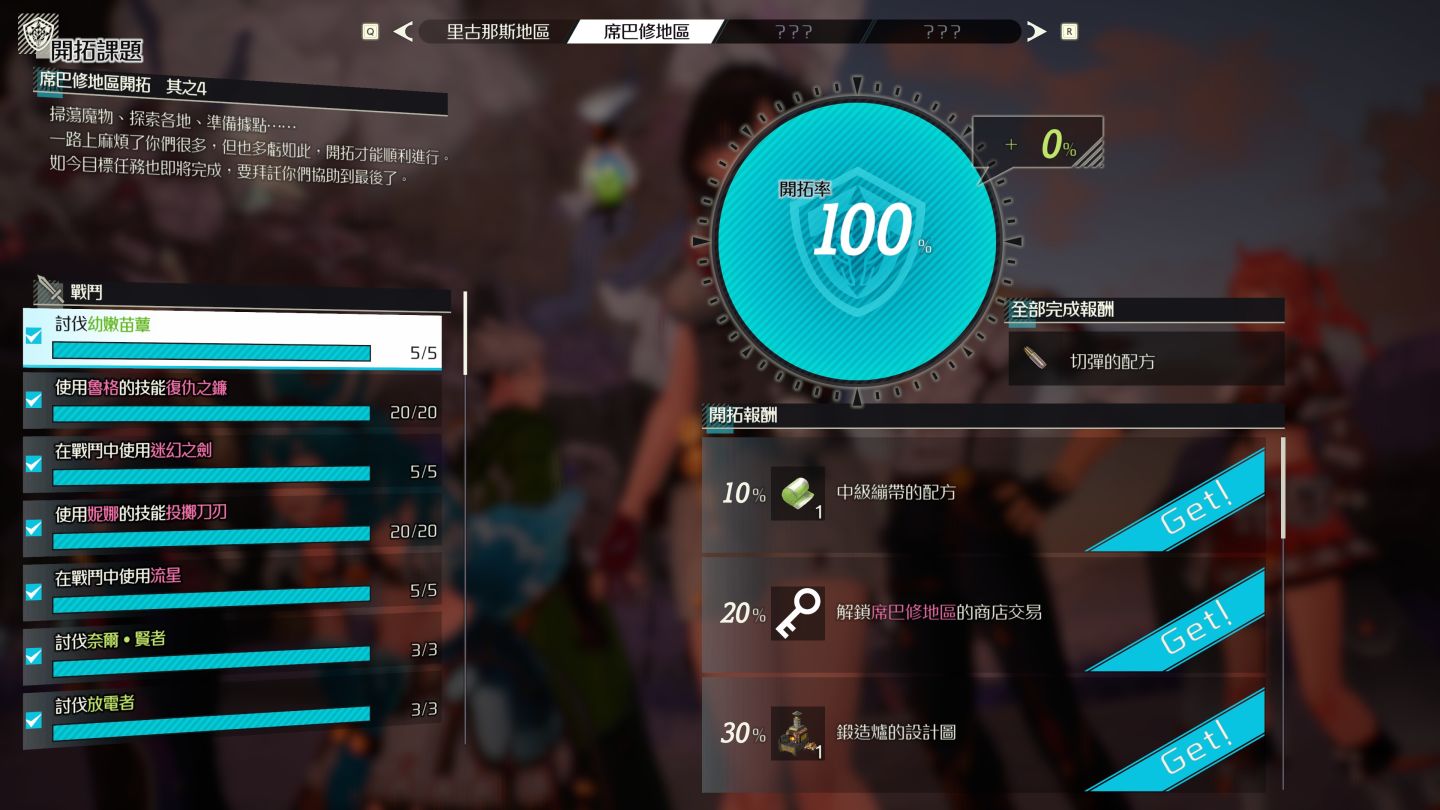對於不熟本作的玩家,也可以藉由達成「開拓課題」來逐步完成目標熟悉探索節奏,但是實際上對於主線的推進並沒有嚴格影響到,編輯在前兩張體驗到的問題再完整版依然存在,那就是 100% 獲得的獎勵應該更早給與對探索的幫助才會更大,否則很明顯就會感受到其實可以不用 100%,依然能夠有一定程度的的探索地圖素材,只有一些障礙不能進去取得寶箱而已。