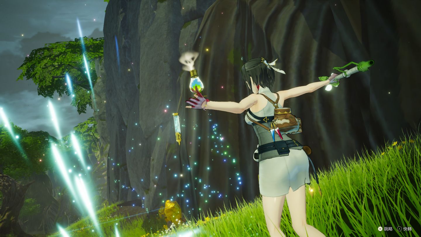 地圖探索方面,本作採用了更開放的區域設計,玩家可以自由探索各個地點,發掘遺跡、採集素材。雖然沒有了「萊莎」的多樣性道具採集手段,但是更需要玩家用 3D 視角環顧周圍「射擊」素材,對於容易 3D 暈的玩家,本作需要轉視角的情境非常多。