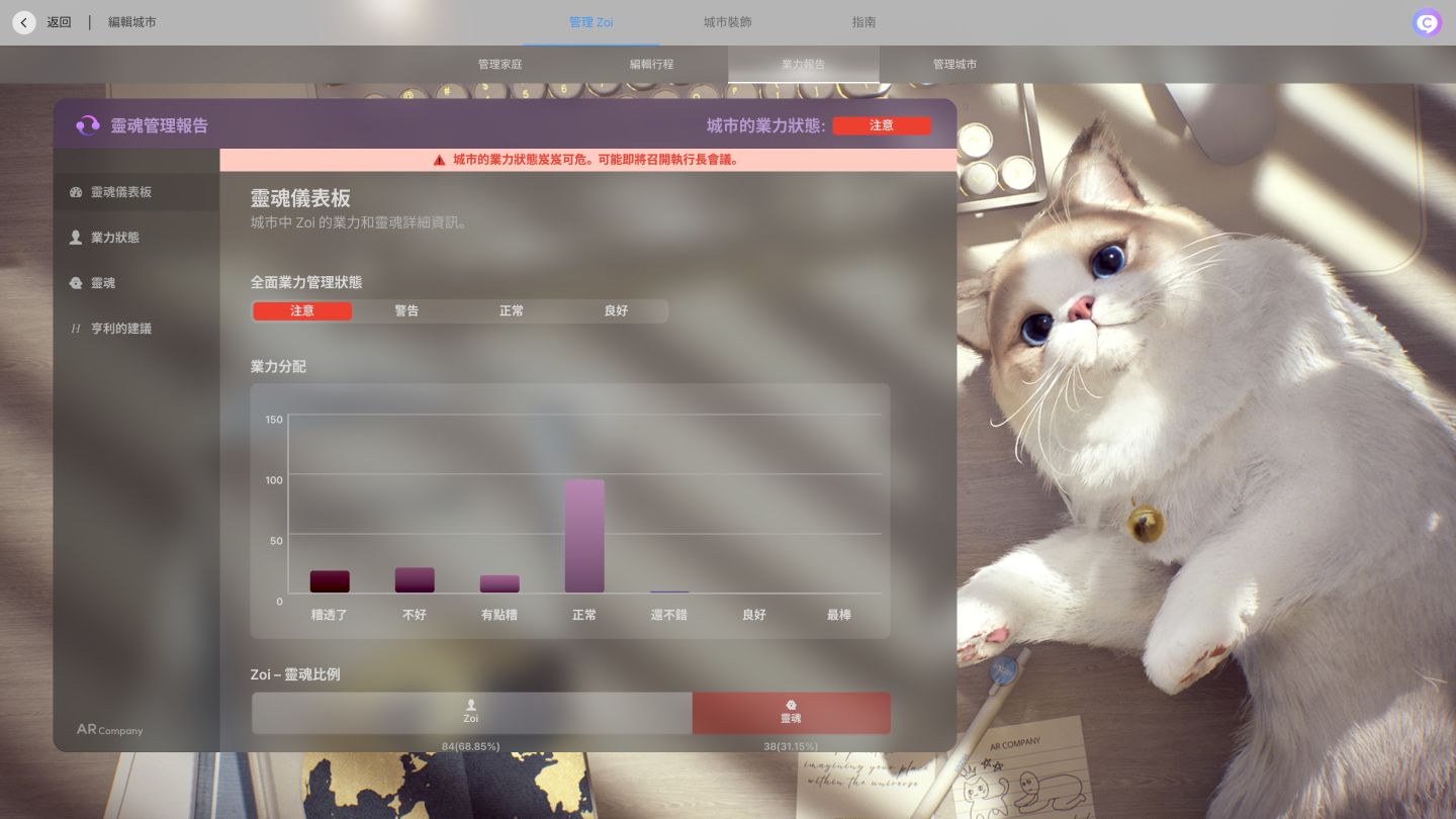 「業力」或許有點難懂,更簡單的就是整個公共環境的城市狀態,舉凡維修、城市景觀、公共安全、ZOI 道德等不同數據,業力一但進入「糟透了」狀態,會造成城市死亡上升,更甚者你可能會被上司約談。
