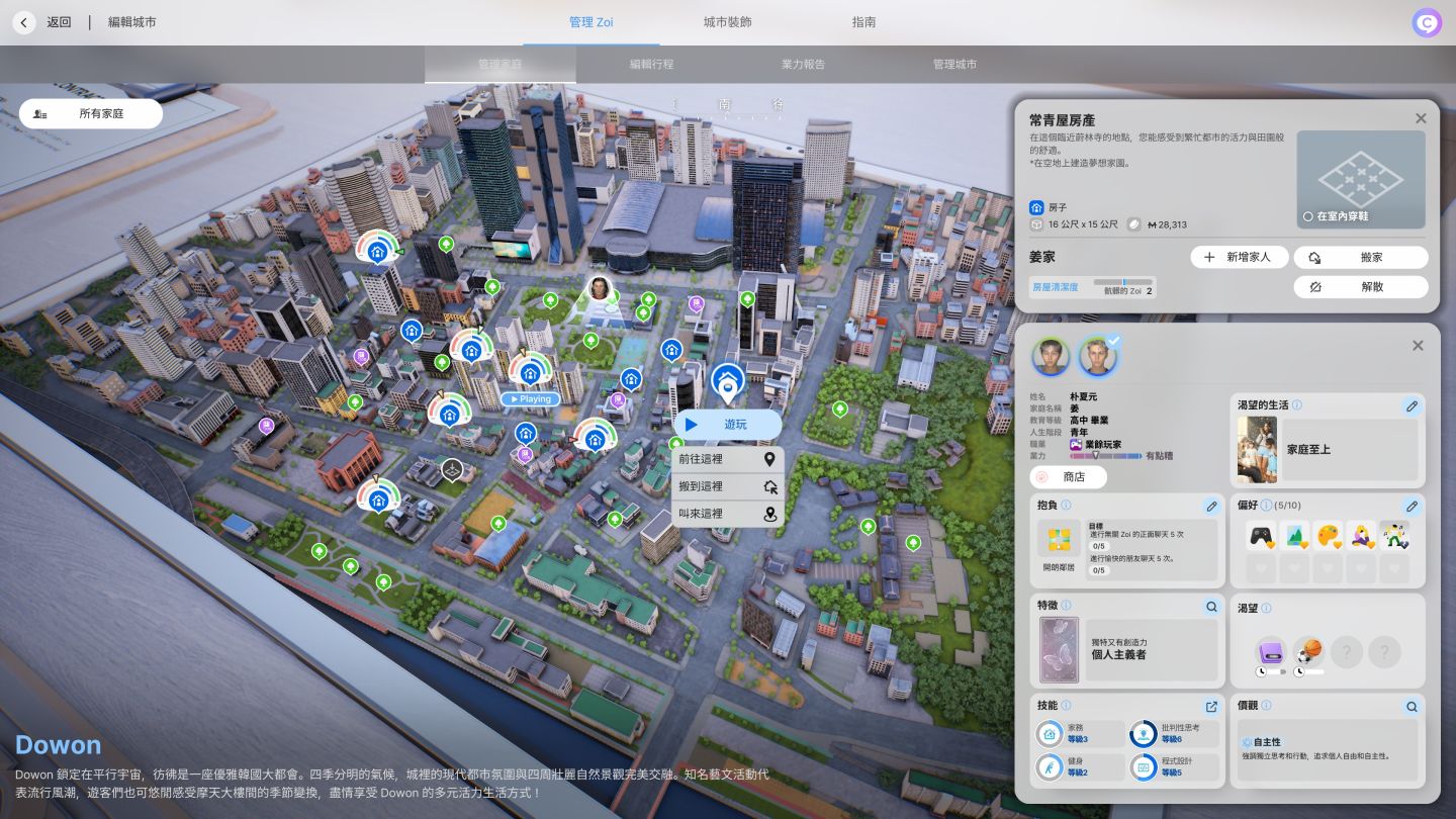 遊戲以其細膩的人物捏角系統、類似MBTI的個性特徵設定、多元的同居選擇以及豐富的職業選項為特色,更特別的是,玩家還可以在遊戲中實現為自己喜愛的偶像應援的夢想 。這款遊戲不僅讓玩家體驗虛擬生活,更融入了許多貼近現實的元素,例如角色的情緒、人際關係,甚至是城市環境的變化,為玩家打造一個更具沉浸感和真實感的遊戲世界。
