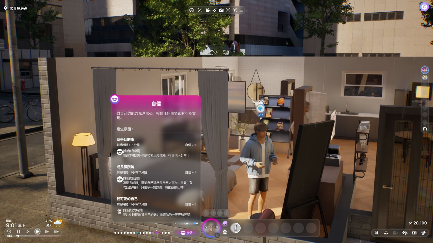 值得一提,也是《inZOI》很有趣的地方,因為套了類似 MBTI 的概念,雖然每一種個性看起來都積極正向,但難免會有陰影面,就好似就算在個人履歷上面寫得自己超級正向,但關起門來還是有不足外人知道的另外一面。