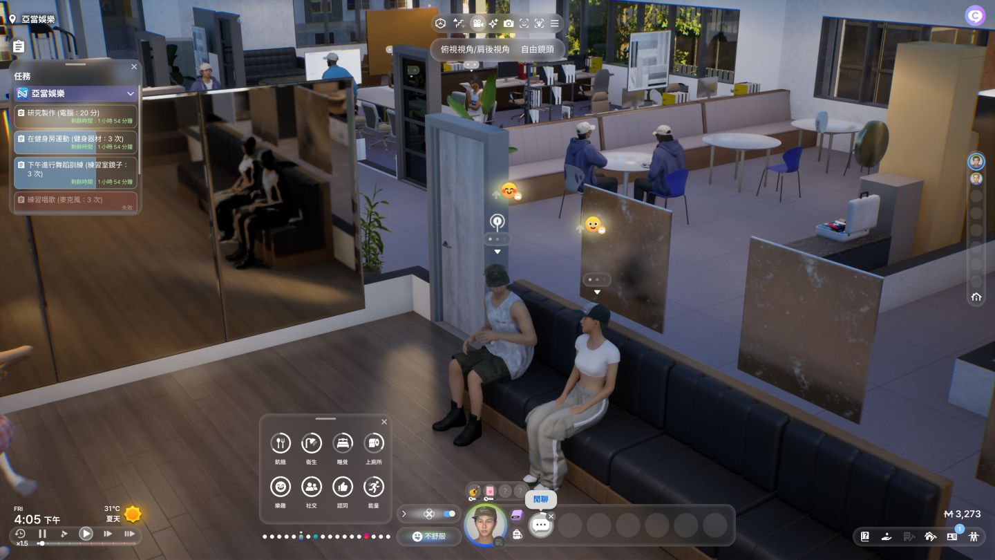 《inZOI》的人際關係除了家庭,職場也很有料。例如練習生在公司裡面跟其他女員工看似過從甚密,讓你各種破防大呼不如脫粉的時候,仔細一看才知道,那個和他在茶水間密切互動的女性員工,根本就是他的經紀人,甚至私底下抱怨練習生很難聊!