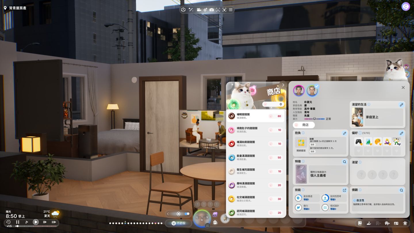 有人的世界就有江湖,就算只有你一個人,外面的世界依舊是江湖。相較《模擬市民》角色的易燃易爆炸(?),《inZOI》更接近「現實生活」,生活中就算再多不順心的事情,只要有簡單休息,簡單果腹,就算孤僻到沒有多餘社交,只要滿足一切最低需求,你還是可以維持最基本的生活狀態,甚至還有貓幣商店買東西可以補正狀態。