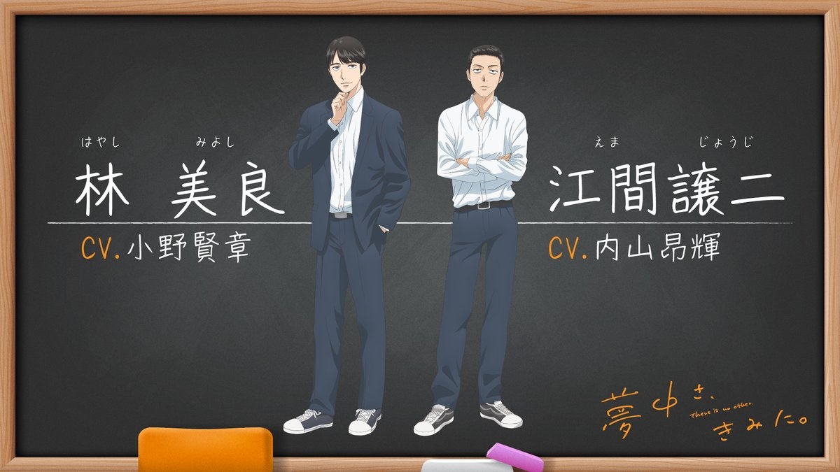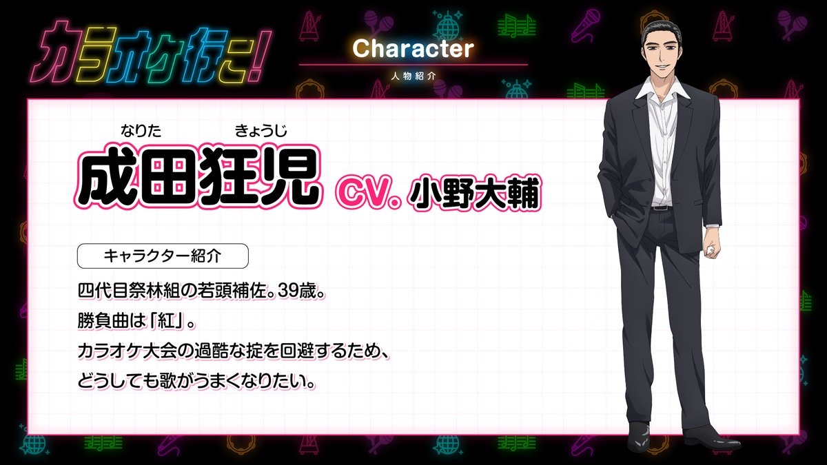 本日公開的角色視覺圖為來自《去唱卡拉OK吧!》的岡聰實(CV:堀江瞬)和成田狂兒(CV:小野大輔),以及《為你著迷》的林美良(CV:小野賢章)、江間讓二(CV:內山昂輝)、二階堂明、目高優一等人,二階堂與目高的聲優將於 3/23「AnimeJapan 2025」舞台活動上發表。