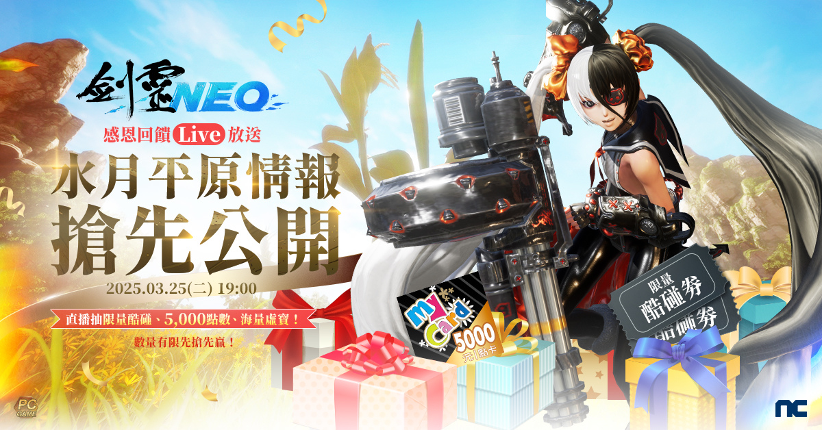 《劍靈NEO》 宣布將於 3 月 26 日 正式開放全新地區「水月平原」,並於前一天 3 月 25 日晚間 7 點 舉行改版直播,向玩家公開最新主線內容與改版資訊。本次更新將同步推出主線第三幕劇情,為玩家帶來更多探索樂趣與挑戰內容。為感謝玩家支持,官方也規劃多項直播互動獎勵與改版活動,邀請玩家一同參與,享受更多遊戲福利。