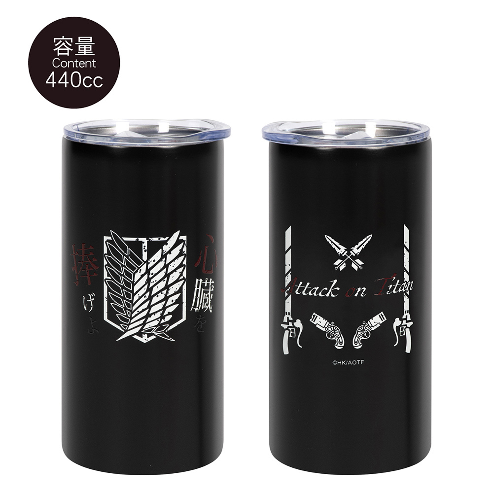 《進擊的巨人》長形不鏽鋼杯,高密封性以及滑蓋設計的杯口,滿足你使用上的種種需求,更讓調查兵團的精神繼續在生活中閃耀。