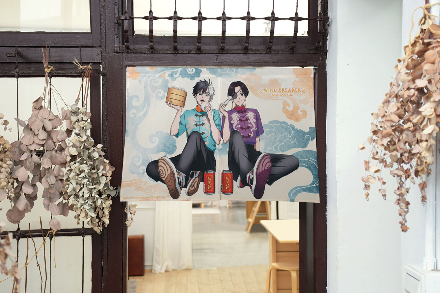第二季動畫在四月即將火熱登場的《WIND BREAKER 防風少年》,剛結束與獅子頭連鬥爭的防風鈴,又將為小鎮的安全大展身手,請大家好好期待眾人的風采。印有櫻與蘇枋兩人吃著包子與小籠包輕鬆神情的日式短門簾,以及櫻遙Q版模樣的人物造型枕都是台中動漫節的全新商品,絕對值得手刀購入。