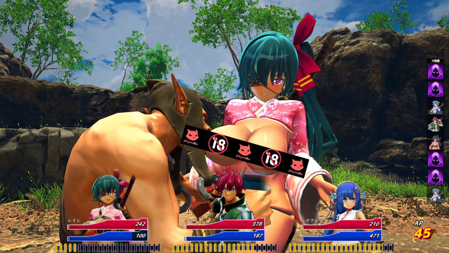 色情場景也經過了精心調整,語音量也大大增加!H場景主要類型為 NTR 與凌辱,一般H與戰鬥H約各 20 種,其他小事件則約有 10 種左右。NTR 有一些不可迴避的事件劇情,但是可以選擇整段跳過。事件回想包含一般事件與戰鬥H,當遊戲通關時即可打開全部的事件回想。