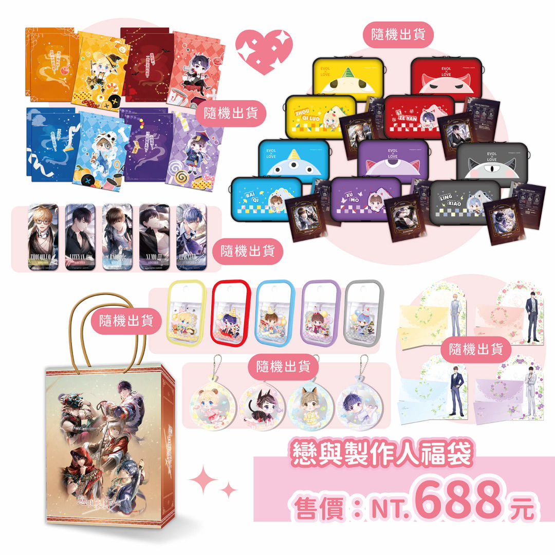 喜愛《戀與深空》的獵人們,沈星回、黎深、祁煜、秦徹周邊商品將再度開放預購,包含胸章、色紙、留言版立牌、筆架等周邊,最後預購機會就在台中動漫節。而 2 月在台北國際動漫節首賣的《新世界狂歡》日版周邊商品,本次在曼迪攤位也可將包含玩偶、壓克力立牌、胸章等現貨帶回家,滿額 600 元加贈隨機日版貼紙乙張。