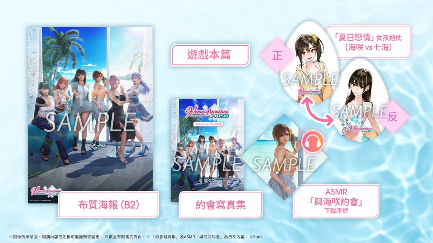 此外,臺灣光榮特庫摩粉絲專頁將舉辦紀念本作發售的有獎分享活動。完成各活動指定任務就有機會獲得包含由六位日本知名插畫家創作的「維納斯女孩」美繪特製照片組、為六位「維納斯女孩」配音的聲優群親筆簽名(簽名板)、YOM 繪製視覺圖特製壓克力板……等豐富好禮,歡迎踴躍參加。