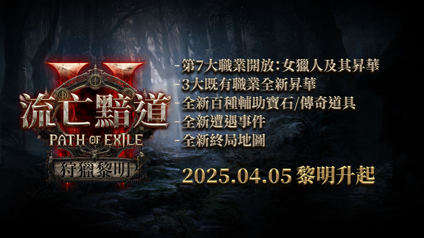 《流亡黯道 2》新版本「狩獵黎明」即將於 4 月 5 日全球同步登場,官方透過線上直播公布包括新角色「女獵人」、全新昇華職業、技能寶石與終局地圖等多項重大更新內容。