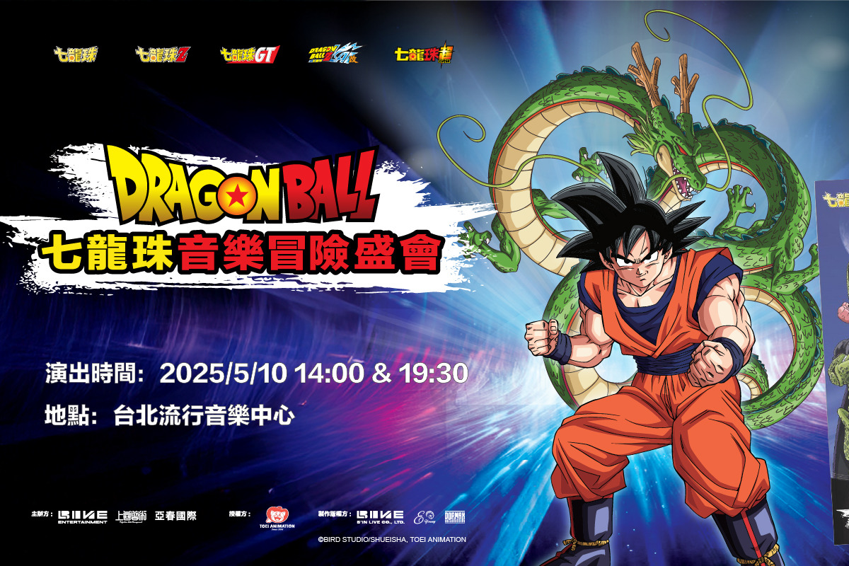 由台灣演唱會領導品牌必應創造聯合製作!史詩級舞台設計,搭配頂級燈光特效,前所未見的規模首次登台演出!更是全新製作,讓粉絲們感受視覺及聽覺的雙重饗宴,走入《七龍珠》的回憶世界。