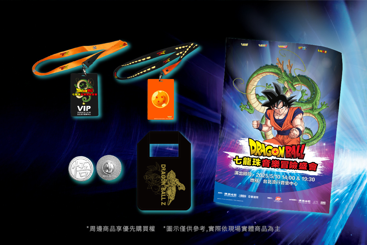 此外,主辦單位特別推出「VIP UPGRADE 限量套組」,讓粉絲能夠收藏這場音樂盛會的專屬紀念品,購買 VIP UPGRADE(NT$1,200),即可獲得專屬紀念掛牌及吊繩、限量主視覺海報、環保袋搭配限量紀念徽章及周邊商品優先購買權等,超級賽亞人專屬收藏,想入手就要快!