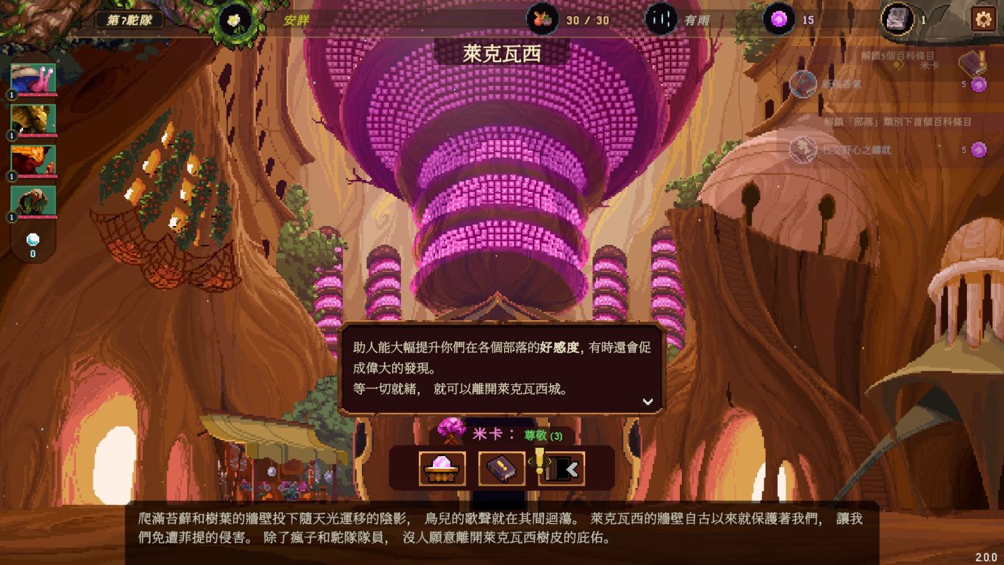 不斷新建樹城,提升居所數量。同時透過記憶晶體庫承載的記憶,將知識傳遞給下一支冒險隊,由此終結氣候亂象。不過你的終極目標依舊是讓母樹烏瑪瑪重獲新生,務必銘記於心。