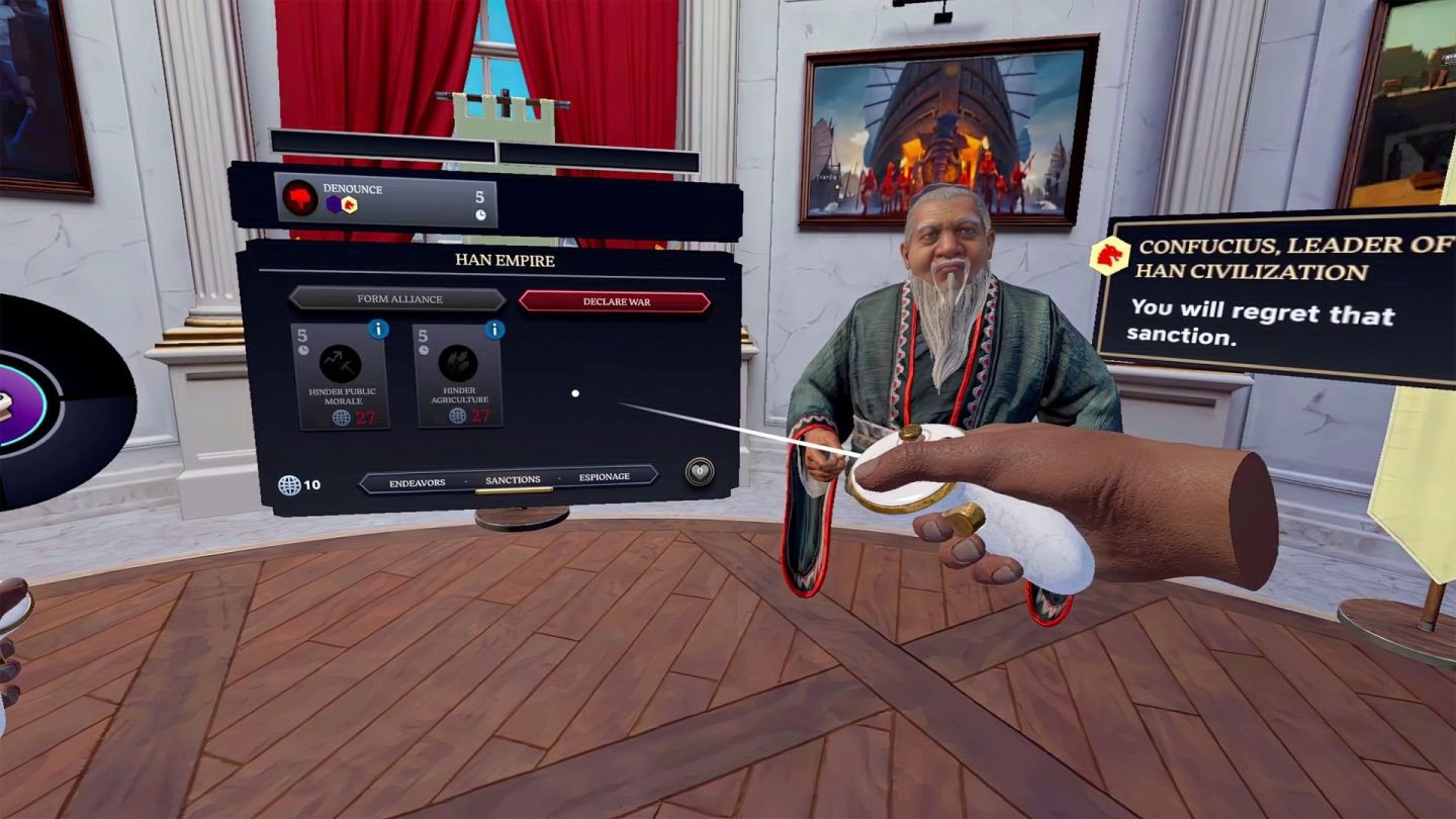 .把你的帝國帶進現實世界:藉由專為 Meta Quest 3/3S 打造的全新介面,只要伸手就能掌控全局。玩家可以自由切換視角,並透過動態混合實境技術,將戰爭桌融入他們的周遭環境。