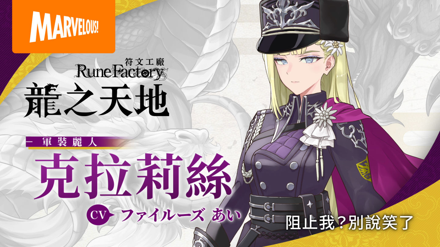 預計於 2025 年 6 月 5 日(週四)發售的奇幻生活遊戲《符文工廠 龍之天地》,每週陸續更新主要登場角色介紹影片。本週公開的是軍裝麗人「克拉莉絲」(CV:ファイルーズ あい)與陣笠眾首領的陰陽師「斑鳩」(CV:小林 裕介)角色介紹影片,影片中包含部分主線劇情與戀愛劇情片段,帶玩家一窺他們的故事與魅力。