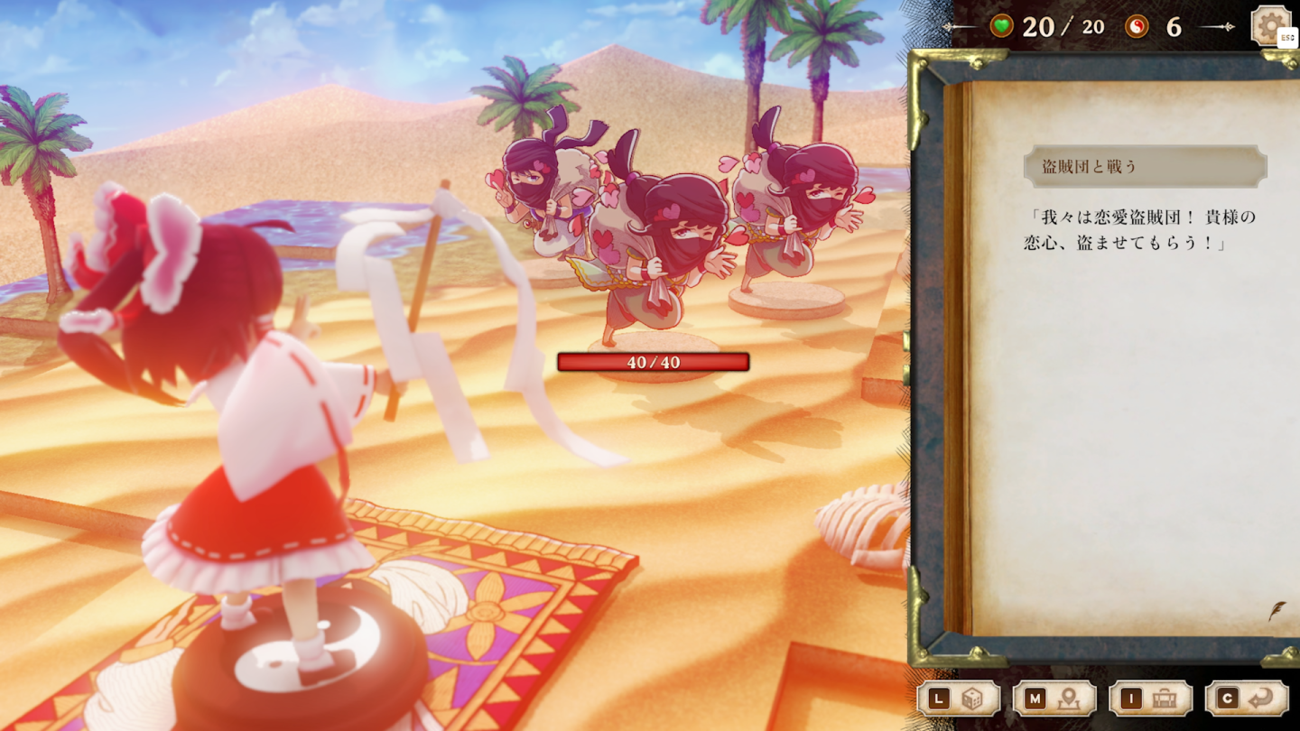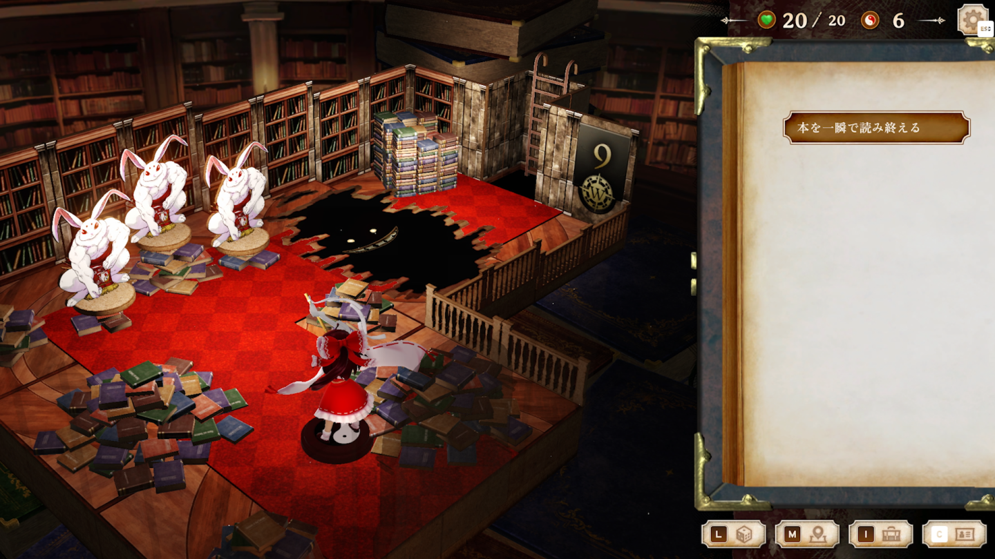 有一天在幻想鄉,魔理沙突然消失了。為尋找魔理沙,靈夢被意外捲入了一本神祕的書中。書中展現出圖書館、沙漠等奇妙景觀,都會出現與魔理沙相似的某些事物。而透過這本書窺視靈夢冒險的,則是蕾米莉亞、芙蘭朵露、咲夜、帕秋莉四人。她們會隨意插嘴干預靈夢的冒險。究竟靈夢能否找到魔理沙呢?