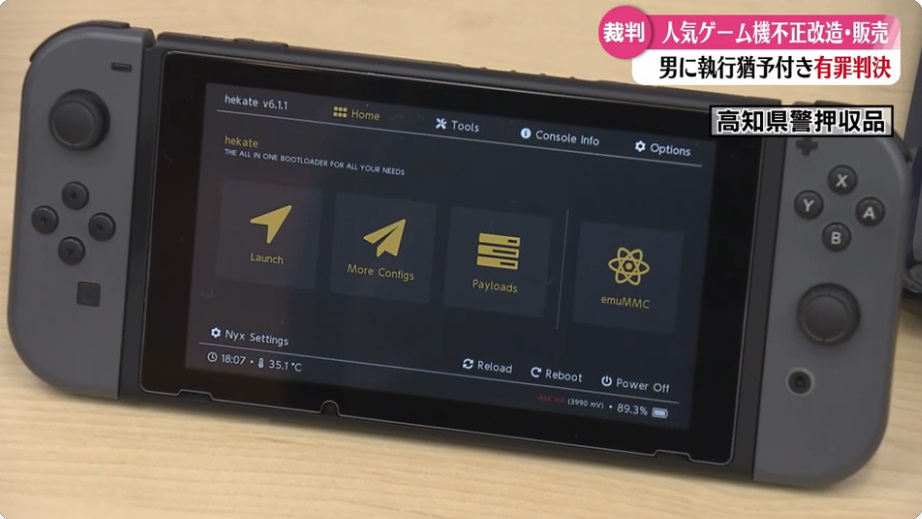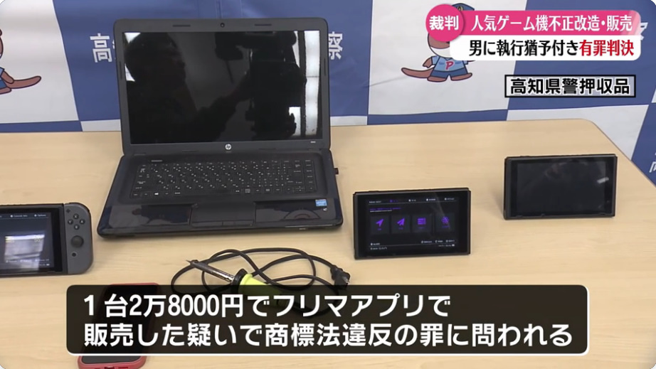日本高知放送等媒體報導,高知地方法院於 4 月 14 日,對一名非法改造 Nintendo Switch 並透過網路販售的男子,判處有期徒刑但給予緩刑的有罪判決。