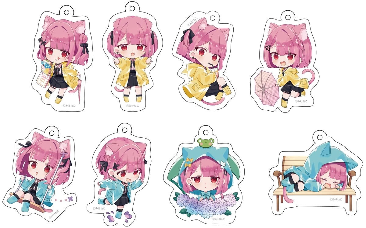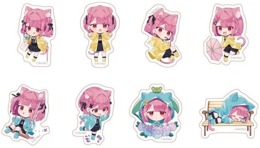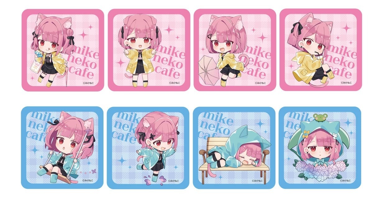 本次聯名咖啡廳以梅雨季為主題,讓粉絲能夠與みけねこ。一起享受雨季約會的感覺,屆時將販售使用全新插圖製作的原創周邊商品、推出以みけねこ。為概念設計的菜單,以及來店者限定入場優惠,凡購買周邊滿 3,000 日圓者將隨機贈送原創貼紙一份(共八種款式),消費餐點或飲品者將隨機贈送杯墊一個(共八款),各場地也將依主題進行裝潢,讓客人享受梅雨季與みけねこ。約會的感覺。