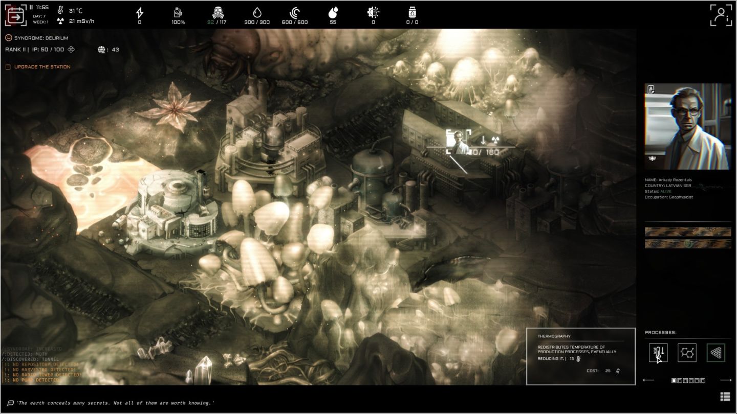 《Anoxia Station》是一款融合了心理恐懼的策略建造遊戲。其背景設定在一个架空的 1988 年,地球表面被一場超級火山噴發摧毁,人類被迫遷入地下生存。玩家將置身於一座衰敗的地下礦站,在高温、輻射、氣壓失衡與缺氧等極端環境中對抗巨型怪物,努力求生。