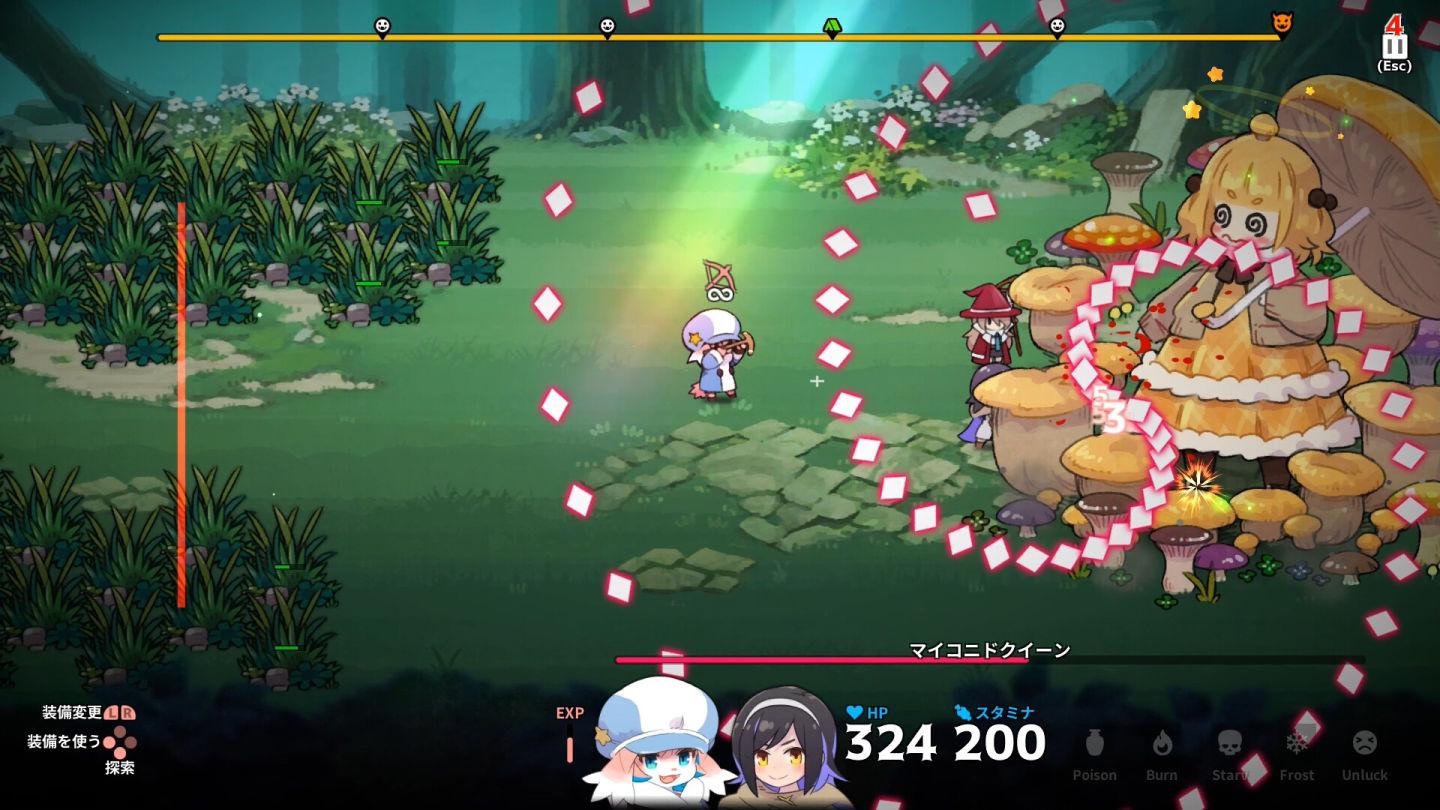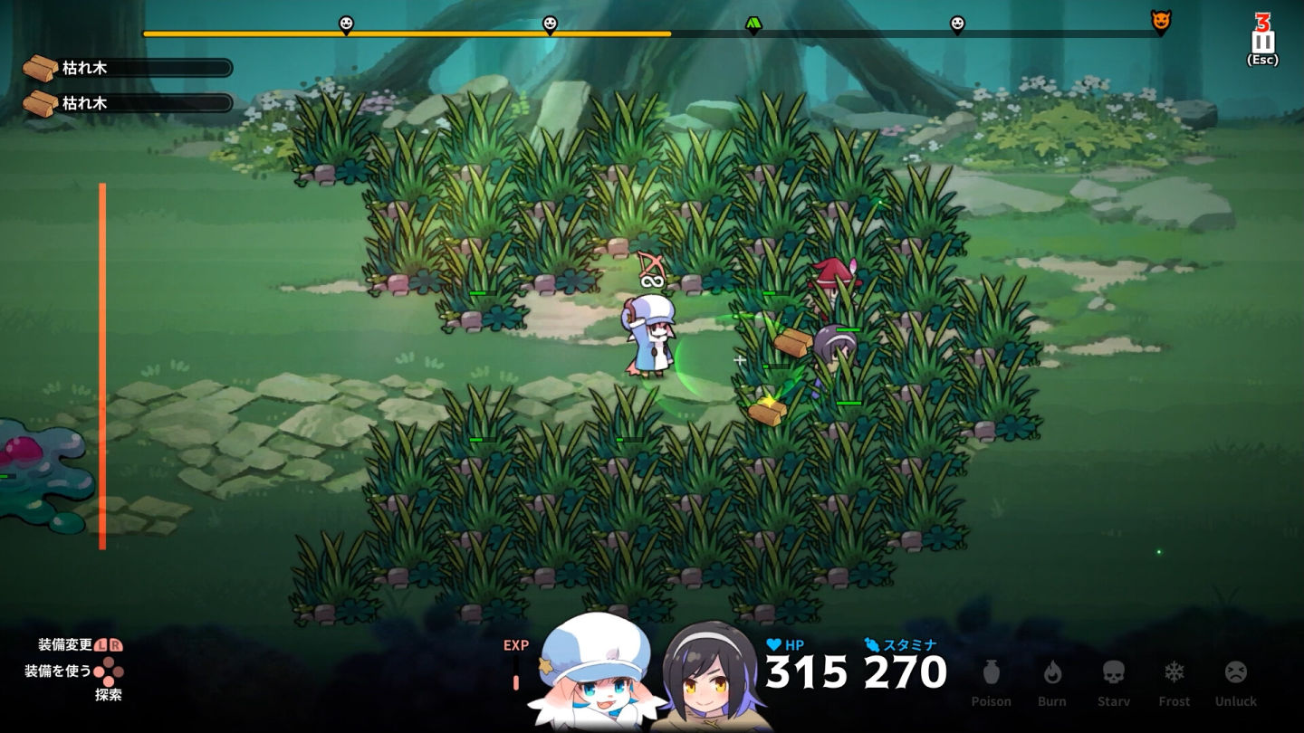 遊戲的戰鬥將會自動進行,玩家在附近收集食材時要記得躲藏避免被流彈波及,並找出怪物攻擊的空隙趁機施展特殊招式打倒它們,當怪物被打倒後 Lop 就能支解屍體,在露營時將它們烹煮成豐盛的料理,每道菜都會有不同的效果,例如解毒或增加攻擊力,玩家在露營時要評估地牢的類型提供適當的料理給隊友吃。
