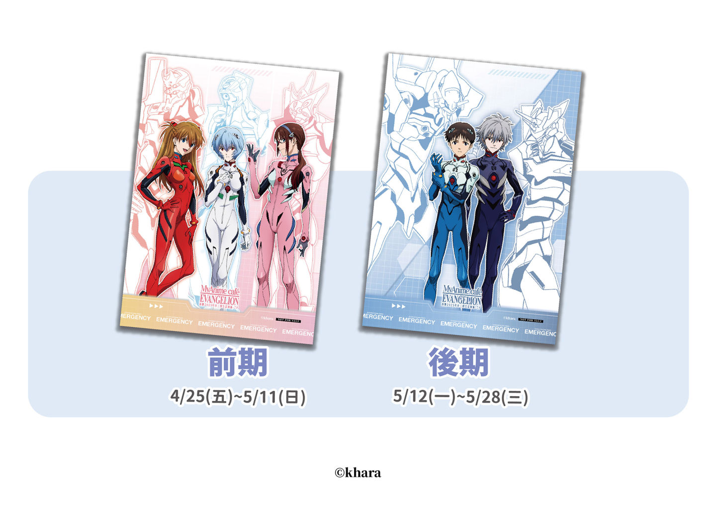 主題活動期間安排 2 階段滿額禮,當日單筆消費滿 1,000 元,即贈對應該期間的獨家 A3 海報 1 張,2 款海報呈現 5 位角色的帥氣駕駛服造型,絕對是《EVA》粉絲不容錯過的珍藏逸品,數量有限送完為止!