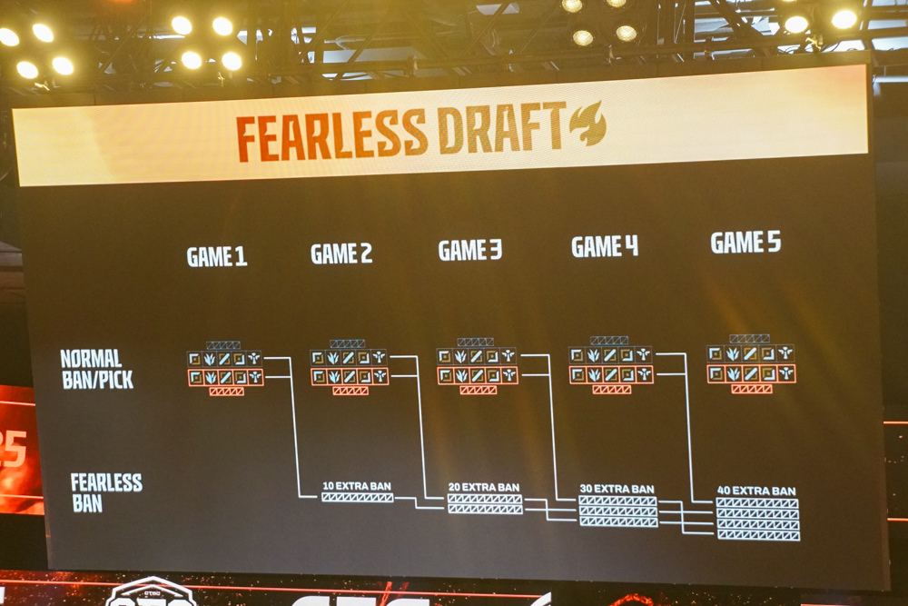 LCP 開幕賽季引入了「無畏選角(fearless draft)」模式,是傳統 Ban Pick 系統的進化。系列賽中已被選用過的英雄,在後續的比賽中對雙方隊伍都將無法再次選用,增加了英雄選擇的多樣性,觀眾也能看到更多獨特甚至意想不到的英雄出場。Ban chee 透露觀眾調查中對此模式相當興奮,雖然各隊需要時間適應但也已經調整過來,LCP 團隊很期待看到隊伍如何突破競爭界線,無畏選角更有助縮區域競爭差距