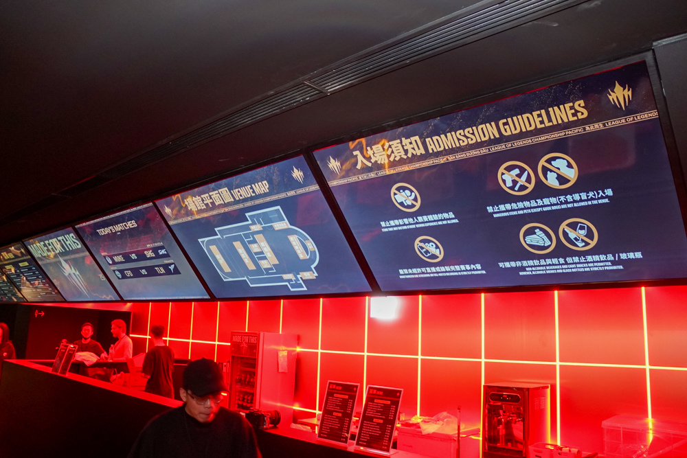 Ban chee:大廳其實有巨大的 LED,但暫時還不會把比賽轉播到那,可是有可能性在,目前要先以場內順利舉行賽事之後才考慮怎麼運用。