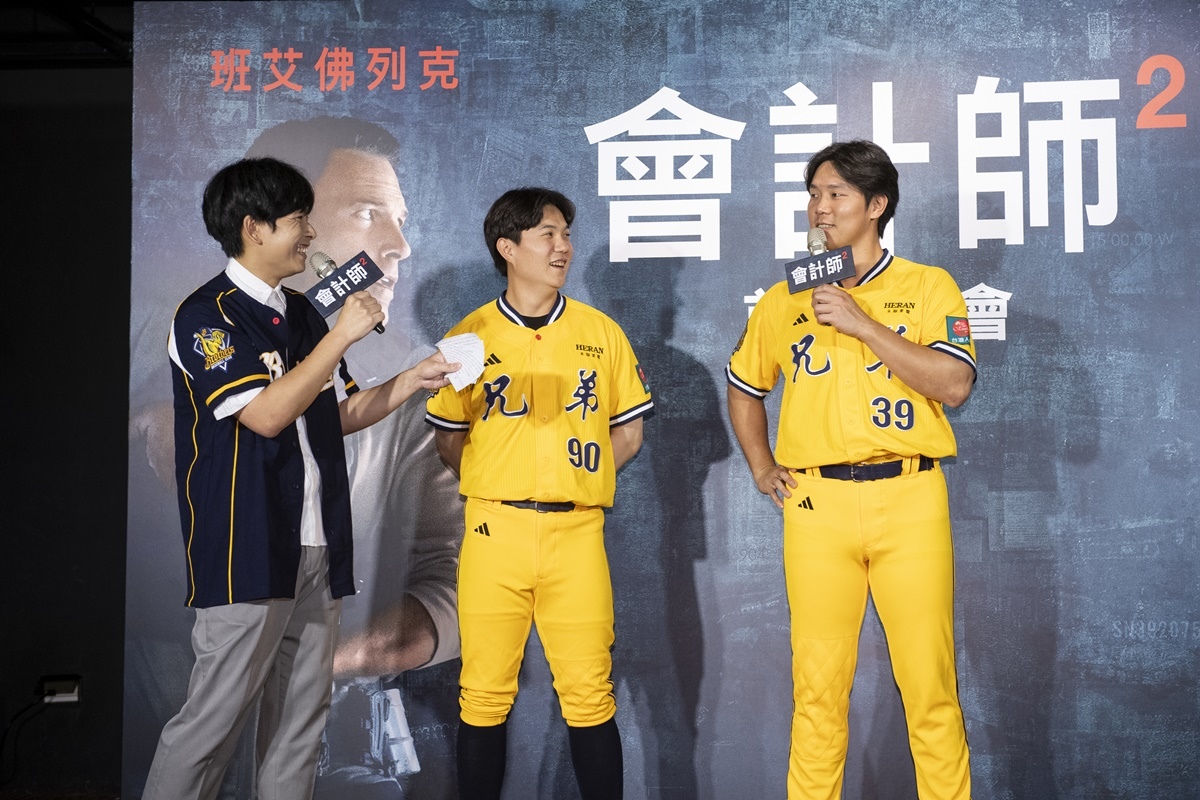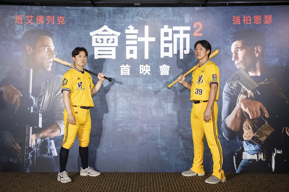 在台創下破億票房佳績的動作片推出續集《會計師2》,由班艾佛列克、強柏恩瑟組成大銀幕最強兄弟檔,聯手向犯罪集團算帳。該片昨晚(4/21)於台灣舉行首映會,特別邀請中信兄弟職棒球隊相挺,詹子賢以及在 12 強賽事中有亮眼表現的江坤宇一同為電影站台。