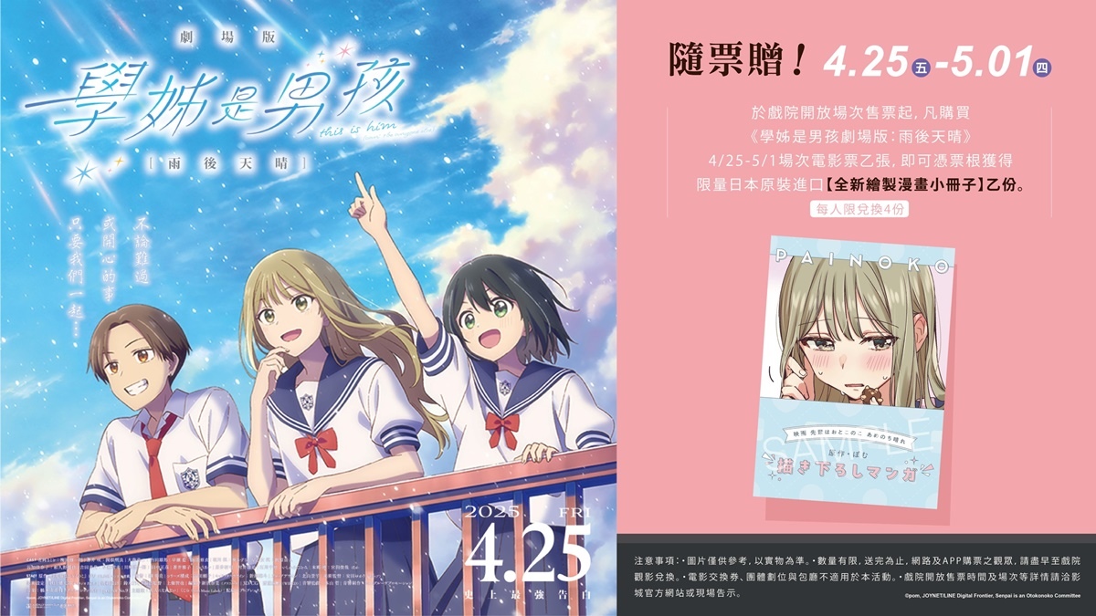 《學姊是男孩 劇場版:雨後天晴》將於 4 月 25 日全台上映,邀你一同走進戲院,見證一場關於成長、選擇與真心的青春告白。