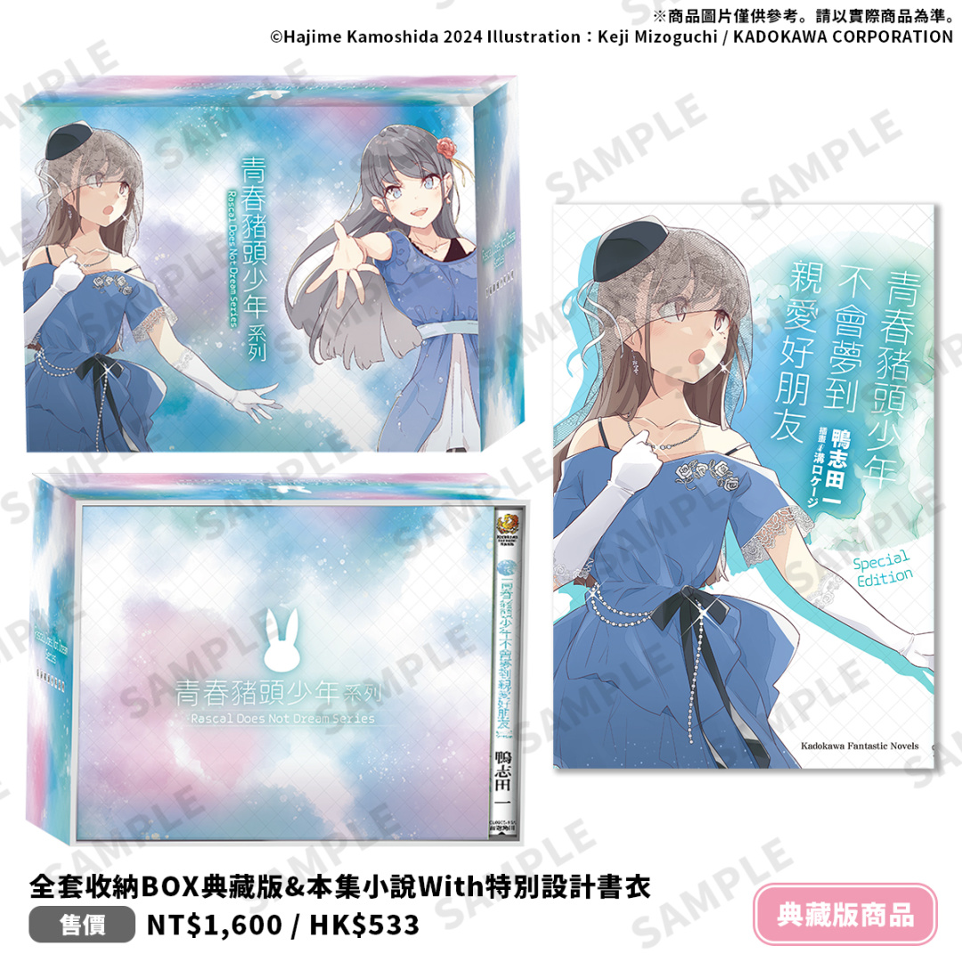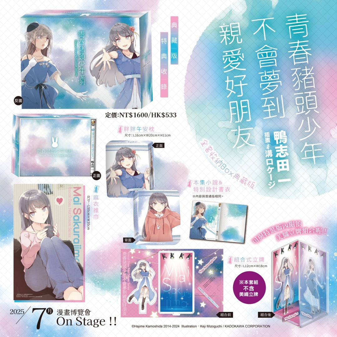 如今,這場有點不可思議的青春物語,終於迎來最終章《青春豬頭少年不會夢到親愛好朋友》,將於 2025 台北漫畫博覽會首賣登場(正式推出時間為 7 月 24 日開賣)!為紀念青春豬頭系列完結,特別推出「全套收納 Box 典藏版」與「特裝版」兩種版本,典藏版僅於台灣角川會場與官網販售,特裝版則將於全通路販售,並於即日起開放特裝版限期事前預購。
