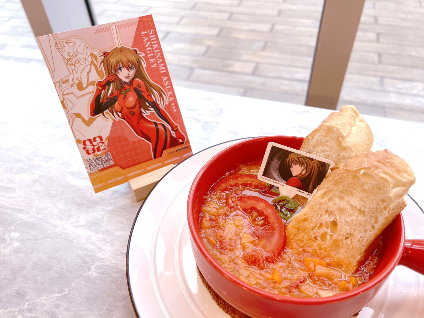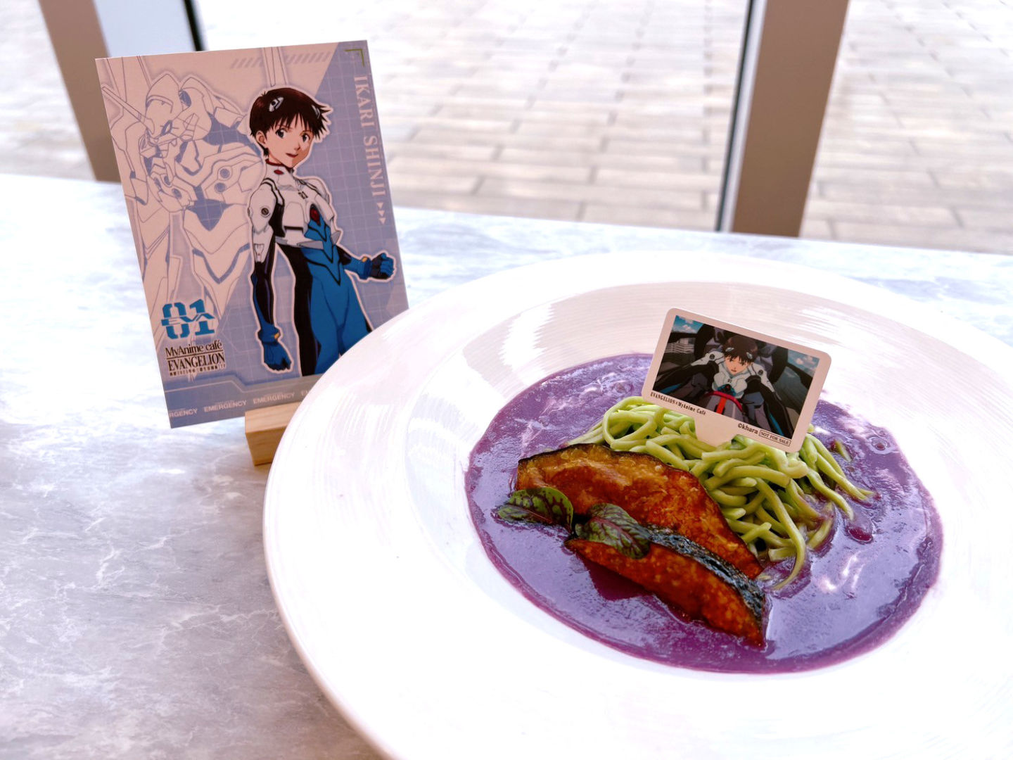 主餐部分包含以角色形象配色或設定發想的「碇真嗣 紫薯濃湯麵」、「綾波零 日式彩蔬咖哩飯」、「式波・明日香・蘭格雷 義式蕃茄濃湯佐法棍」、「真希波・真理・伊拉絲多莉亞斯 粉紅醬螺旋麵」、「渚薰 芝麻醬漢堡餐盤」等。