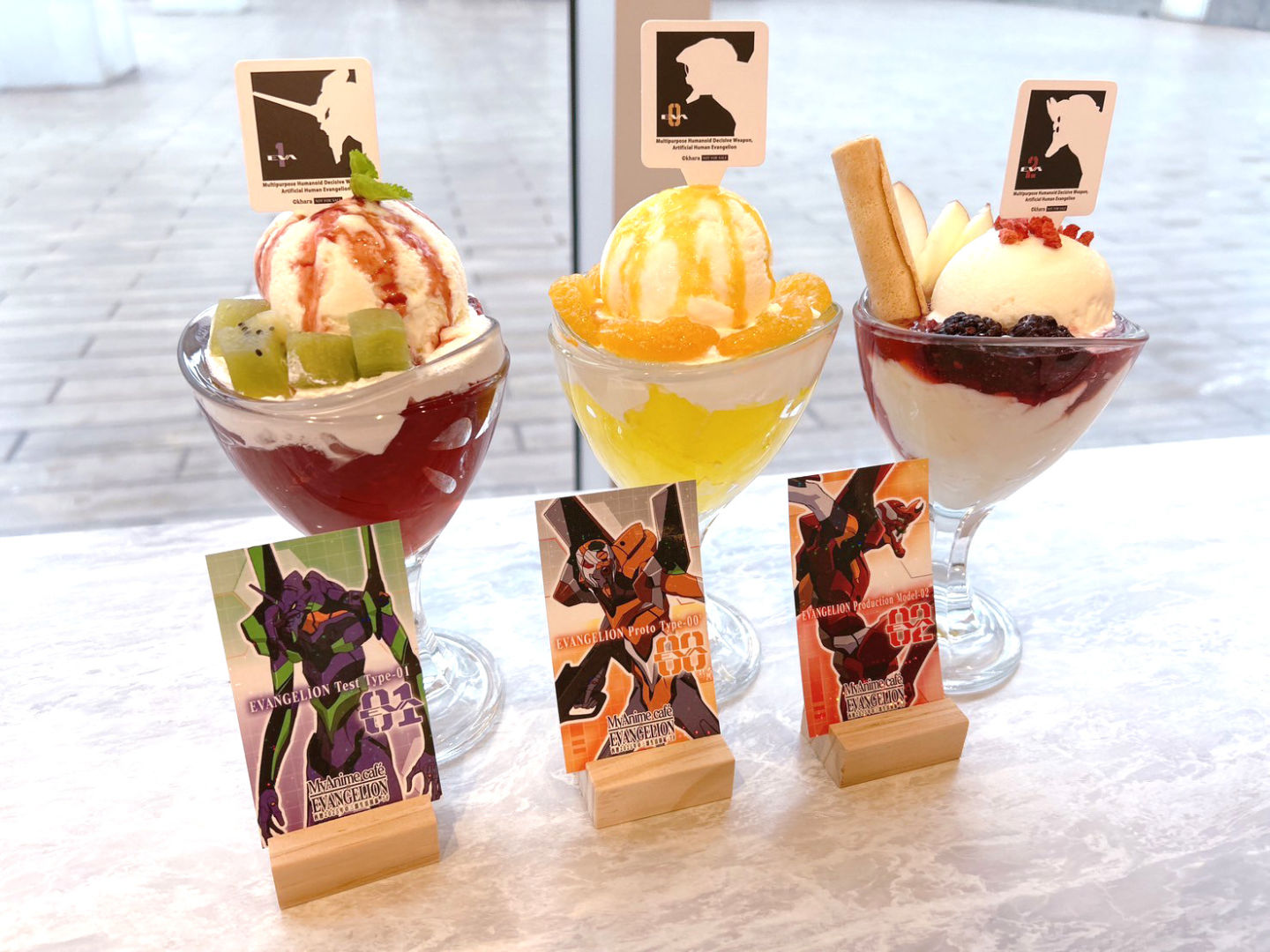 甜點則有以 EVA 初號機、零號機、2 號機為概念設計的聖代,飲品亦有多款呼應角色主題的特調。