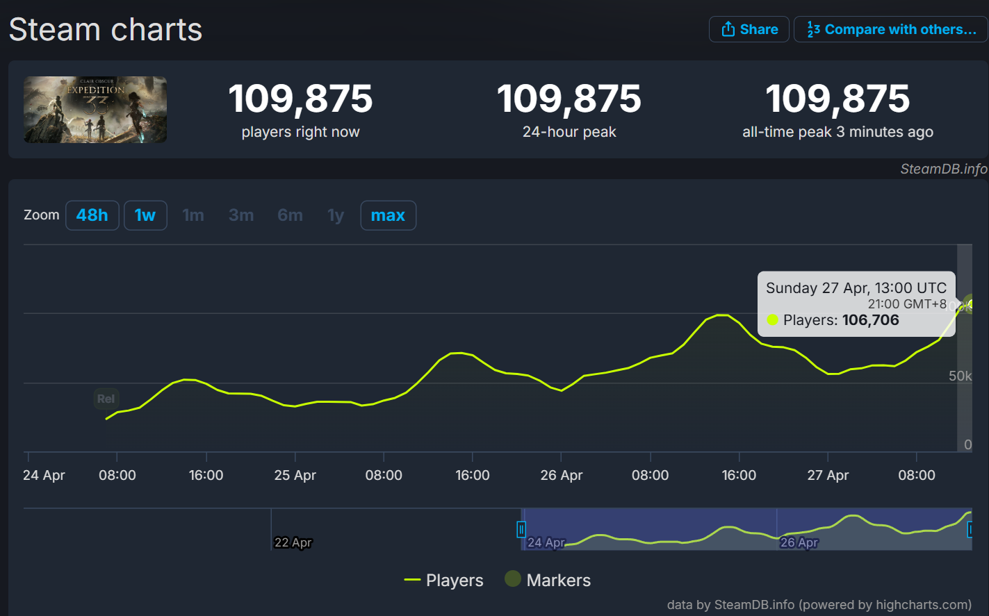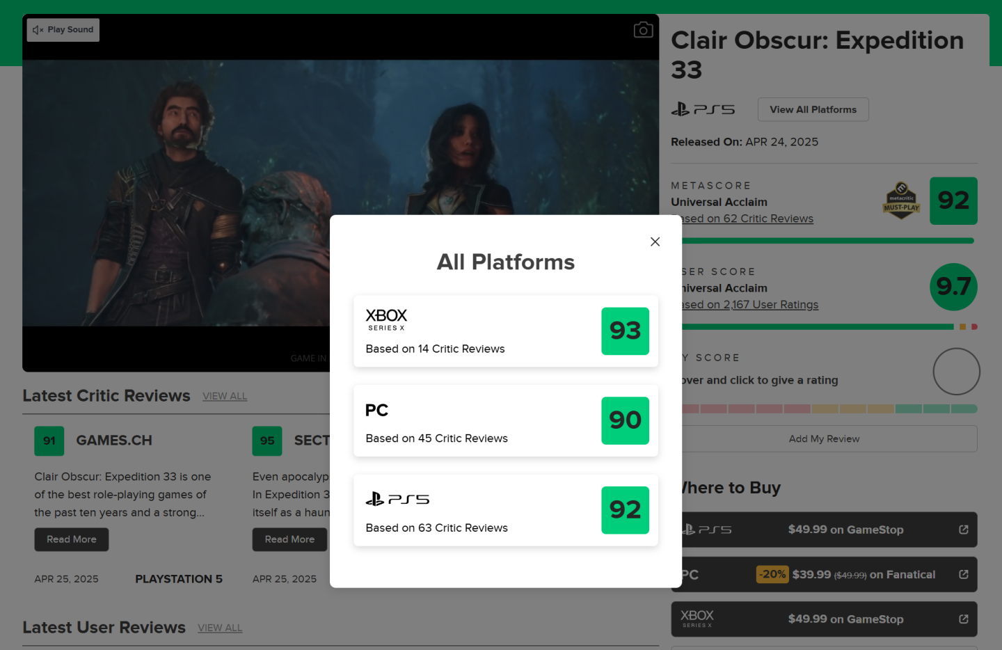 《光與影:33號遠征隊》發售後在評分網站的用戶評分與媒體都留下高評價紀錄,現已證實該遊戲於發售後僅三天內,在全球範圍內售出超過一百萬套,此數字不包含 Game Pass 玩家。這意味著此數據代表實際銷量,同時根據 Steam DB數據顯示,《光與影:33號遠征隊》突破 Steam 同上玩家峰值十萬人,成為 2025 年矚目新作之一,有望在年底遊戲大獎入圍多項提名。