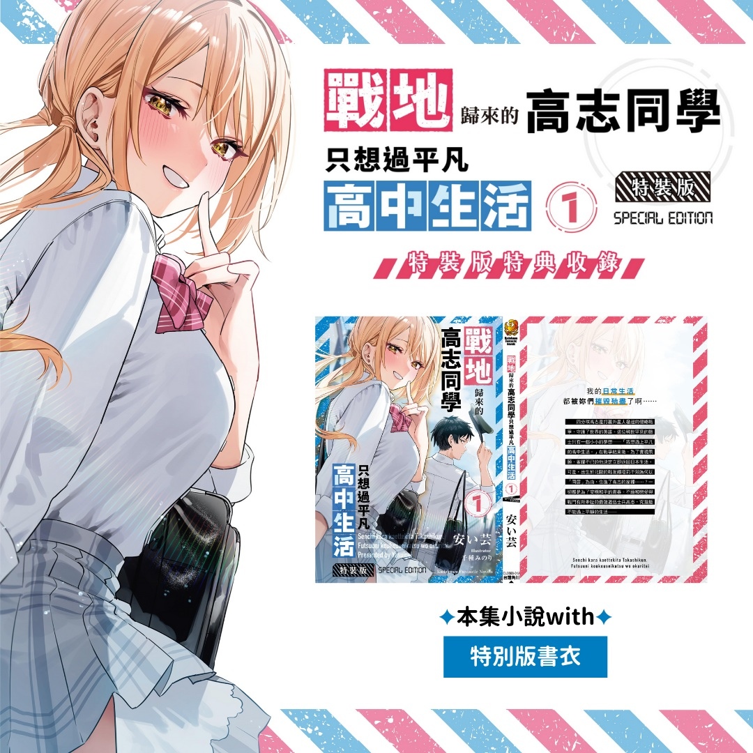 「我想過上平凡的高中生活。」戰地英雄的青春戀愛喜劇《戰地歸來的高志同學只想過平凡高中生活 (1)【特裝版】》特別收錄精美周邊,讓讀者更能沉浸在這場不平凡的戀愛喜劇中。