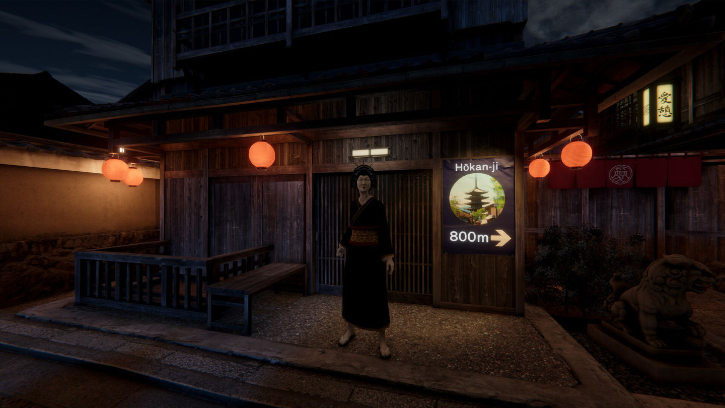 至於在本作的玩法與道路選擇方面,採用類似經典名作《8號出口》那樣的設計,玩家可以在京都的巷弄之間不斷移動來尋找路上的各種異變點(總計會有多達 32 種變異登場),當找出違和異變點後就需要在三叉路向左方轉彎前進,而如果找不到異變,則是需向右方轉彎前進。玩家可以一邊欣賞京都風格的街道風景,一邊不斷前進朝正確方向前進。