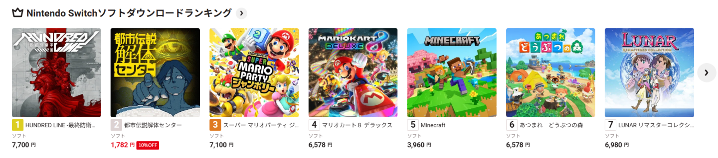 任天堂 Switch(Nintendo eShop/My Nintendo Store)的排行榜過去是依照「下載數量」排序,但自 5 月 1 日起,改為以「銷售金額」排序,原本的制度對低價遊戲較有利,因此曾流行一種行銷手法--將遊戲打一折甚至更多,以極低價格吸引大量下載,從而衝上排行榜前段;然而在改為「銷售金額」排序後,單價較高的遊戲變得更容易進榜,導致低價的獨立遊戲較難進入排行榜,隨著未來 Switch 2 的上市,預計高製作成本的大作將增加,使得進榜變得更加困難。